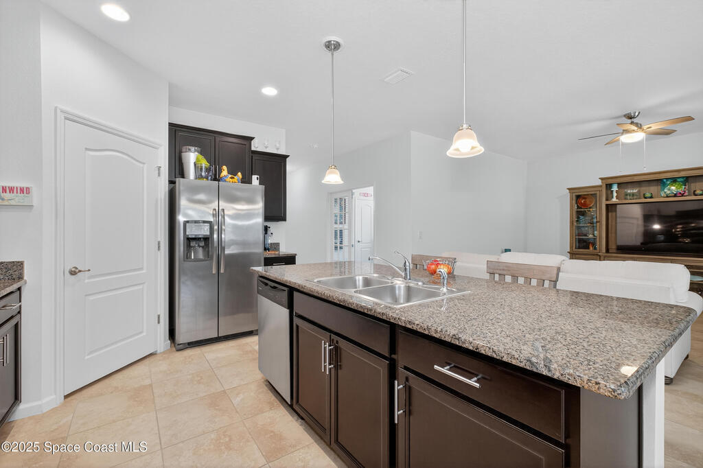 This beautifully maintained 3-bedroom, 2-bath home features an open floor plan, a kitchen with granite countertops, a large island, and an oversized walk-in pantry. The primary suite includes a spacious walk-in closet and a bathroom with double sinks and a large tiled shower. Tile flooring in the main areas and newer carpet in the bedrooms make the home comfortable and inviting. Additional features include a generator hookup and storm shutters. The backyard offers a serene view of the preserved trees, providing privacy and natural setting.The community offers two pools, a fitness center, tennis courts, RV parking, a clubhouse, playground and a walking trail through a preserved natural area. HOA covers landscaping, pest control, mulching, sprinklers, giving you a low-maintenance lifestyle in a welcoming neighborhood.