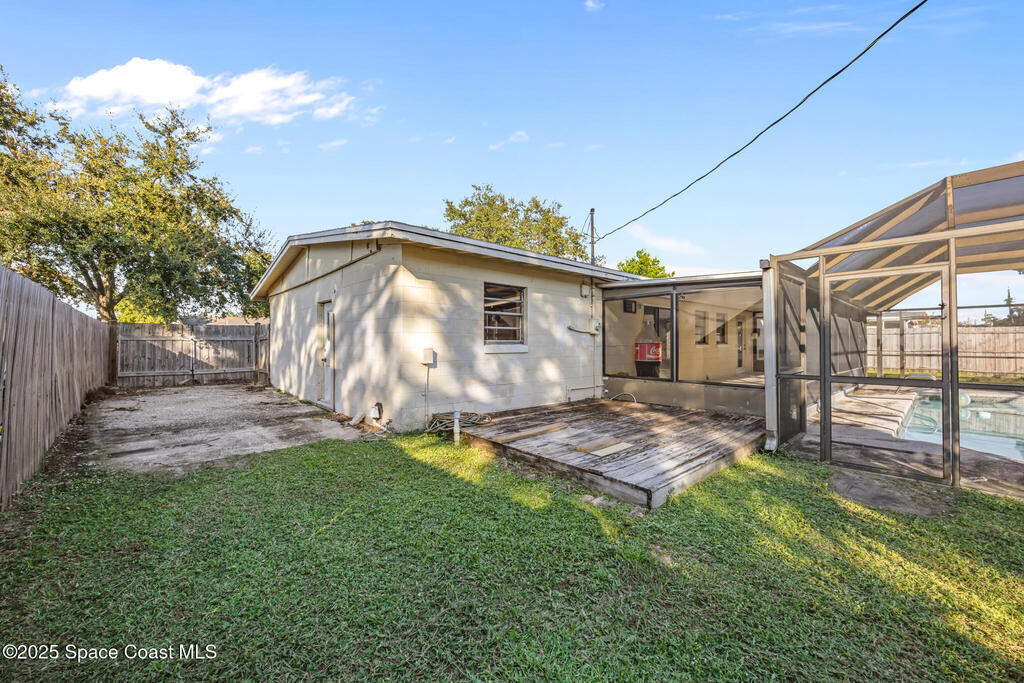 Don't pass on this classic pool home on the Space Coast. This 3 bedroom, 2 bath, 1 car garage offers the charm and character that newer builds just can't match. Updates over the years include roof in 2018, air conditioner in 2017, water heater in 2025 and updated kitchen with granite countertops. Outside the screened in porch leads to the pool area-perfect for enjoying the sun and rocket launches. The yard is completely fenced for privacy and has parking for toys as well. Close to schools, shopping, highways, Kennedy Space Center and a 45 minute drive to Orlando International Airport.