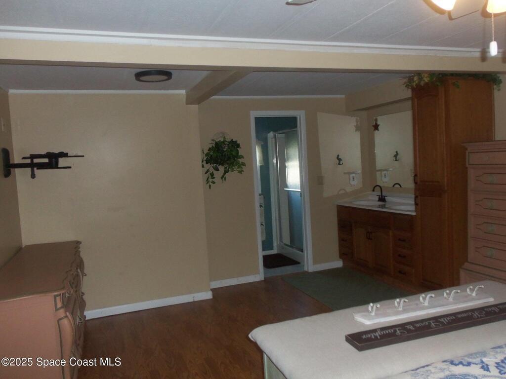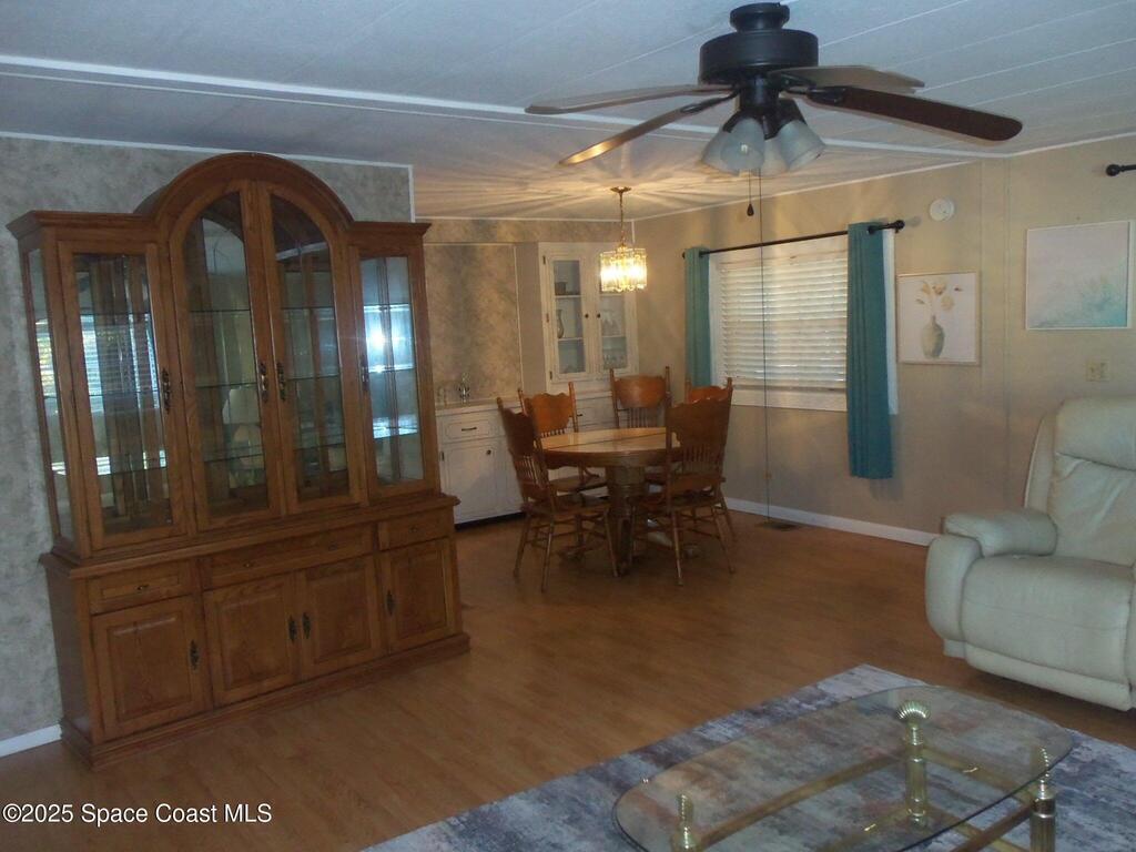 This home is a 1977, 24'x48' home fully furnished with a list of the following pluses:FANS, NEW WINDOWS, LAMINATE FLOORS K/LR/DR/H/MBR, REMODELED KITCHEN AND BATHS, HUGH UTILITY ROOM, MASTER BEDROOM ENTIRE WIDTH OF HOME, FLORIDA ROOM ON FRONT OF HOME FINISHJED, W/WALL A/C UNIT, SCREEN ROOM ON SIDE OF HOME PAINTED, DOUBLE WIDE DRIVEWAY. Come in and see this once in a lifetime home. It's a must-see home. There is a one-time registration fee paid by the buyer to the Barefoot Bay Recreational district is $1,605.00. The annual maintenance fee is paid on the annual Real Estate Taxes in the amount of $1001.17
