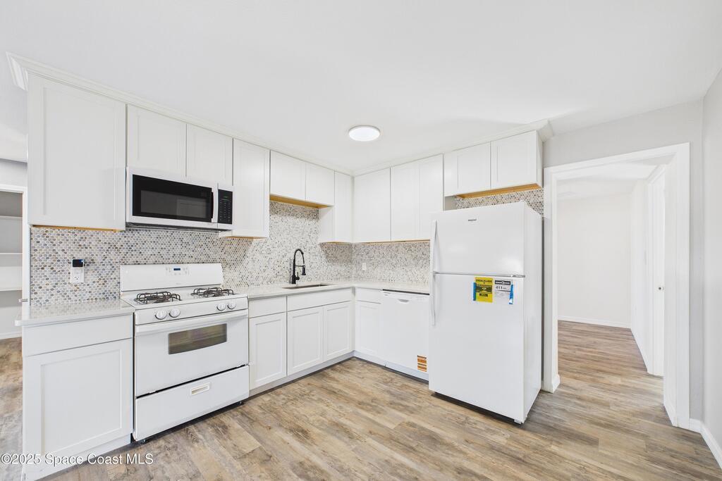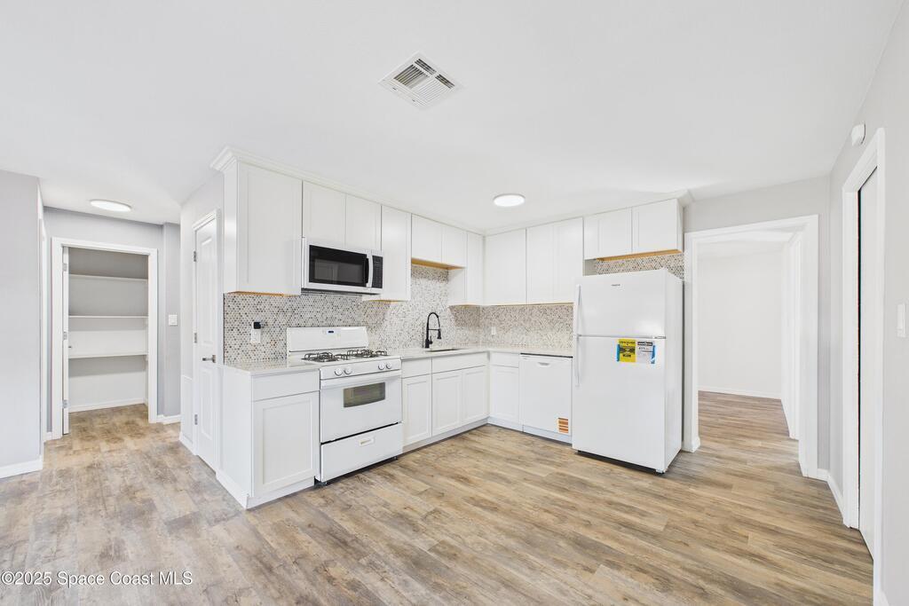 MUST SEE Perfection Plus in this Completely Remodeled Like New Home - Starting with Shaded Covered front Patio Through Front Storm Door to New Font Door into ALL New A/C, All New Ductwork Throughout, New Double Pane Vinyl Clad Windows, Whole House Luxury Vinyl Wood Look Flooring, New Refrigerator, New Dishwasher, New Microwave, New Washing Machine, Roof 2016, New Soffits 2025, All Pex Water Lines 2025, All New Kitchen Cabinets with Quartz Countertops, Gorgeous Tile Backsplash, Upgraded Stainless Steel Sink and Hardware Pull Out Faucet, All New Light Fixtures and Ceiling Fans Throughout, New Bathroom Cabinetry, Countertop, Mirror, Gorgeous Paint Color New Fresh Paint Inside and Out, New Fresh Landscaping, Floorplan has Additional Back Room For Office or Addtl TV Room Flex All Fenced Back Yard, 10x9 Shed in Back Yard, Covered Roof Screened Backyard Patio that opens to the Paver Backyard Open Air Patio, Exterior String Lighting For Added Night Entertaining Atmosphere, Walk to Schools