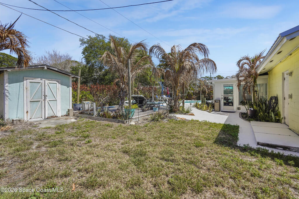 This 3-bedroom, 2-bath home offers 1,297 sq ft of updated living space with a functional layout. The renovated kitchen features quartz countertops, stainless steel appliances, and a Cafe gas oven, opening to the main living area.Major updates include a 2018 metal roof, 2016 HVAC, 2023 water heater, and gas heating. The back porch features glass sliders for enclosed or screened use year-round.Step outside to your private backyard and relax by the pool in the in-ground saltwater pool with sun shelf, plus ample space for seating and entertaining. RV/boat parking adds flexibility for storage and Florida living.Not in a flood zone, Rocket launch views, Spacious, usable yard! Schedule your showing today.