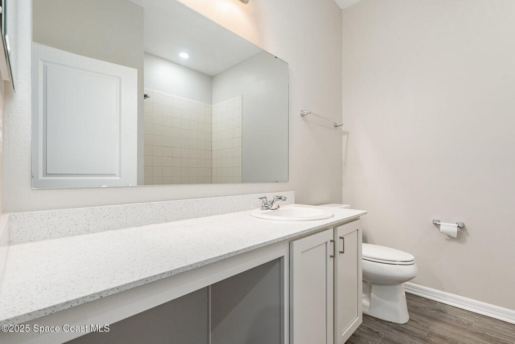 Tucked away on a quiet cul-de-sac street, this inviting, upgraded home sits on a serene conservation lot w/a fenced backyard overlooking the peaceful preserves. Wood-look tile flooring spans throughout. Spacious living/dining areas feature surround sound & French doors opening to a breezy covered lanai & an extended arbored patio stretching out to the sizable, sunny backyard. The showcase island kitchen shines w/a large breakfast bar, modern quartz counters, SS appliances, double ovens, a flat cooktop, tile backsplash & pendant lighting. Relax in a generous primary suite w/a walk-in closet & stylish bath w/dual sinks & separate tub/shower. Two additional bdrms flank a tub/shower bath, with the 4th bdrm nearby. Lawn care, washer & dryer included! Location can't be beat--close to schools & the bustling Palm Bay Rd. corridor offering tons of shopping, restaurants, everyday conveniences & access to I-95.
