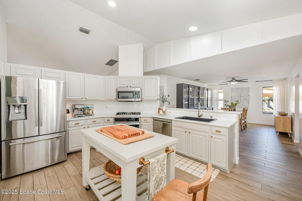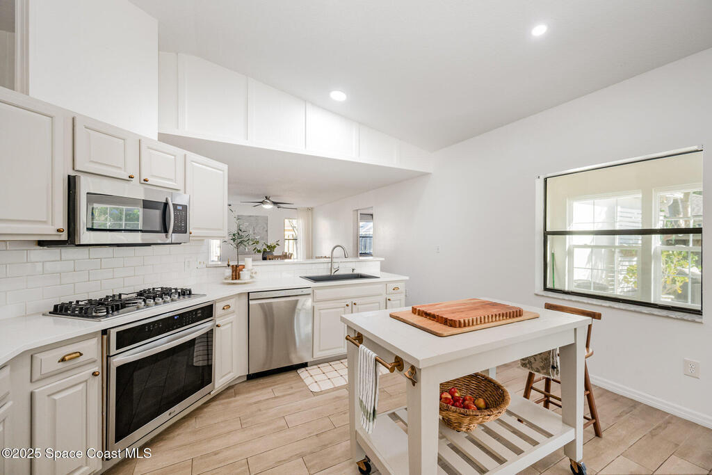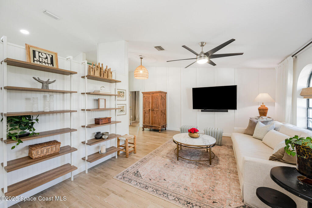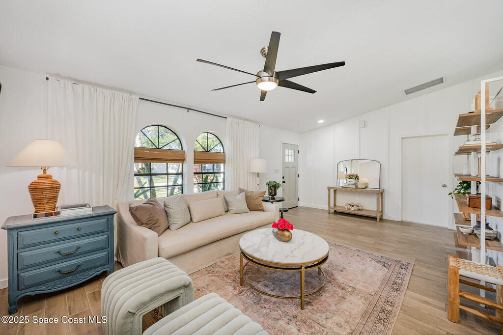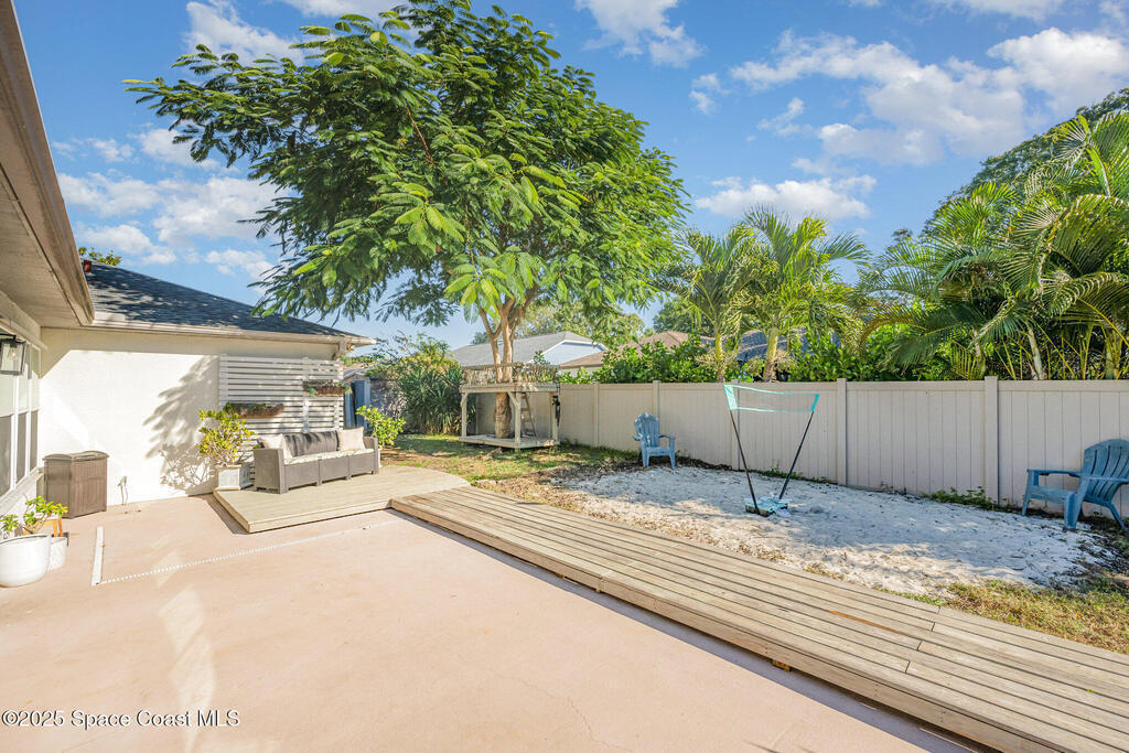 Enjoy relaxed Viera living in this inviting 3BR/2BA home located in the well-established neighborhood of Crane Creek. This home offers abundant natural light, open living spaces, and an updated kitchen with a gas stove and stainless steel appliances. Arched windows in the main living area and wood-look tile flooring add warmth and character throughout.Situated on a corner lot, the property features a fully fenced backyard with plenty of room to relax, play, or entertain, complete with mature trees and multiple outdoor seating areas. An enclosed flex room provides added space for hobbies, fitness, or work-from-home needs.Within Crane Creek, you'll appreciate quiet streets, nearby parks, golf, top-rated schools, and convenient access to shopping and dining.