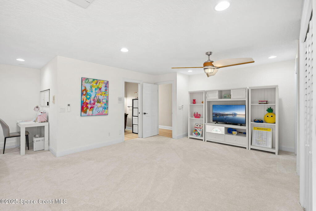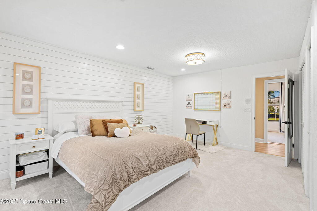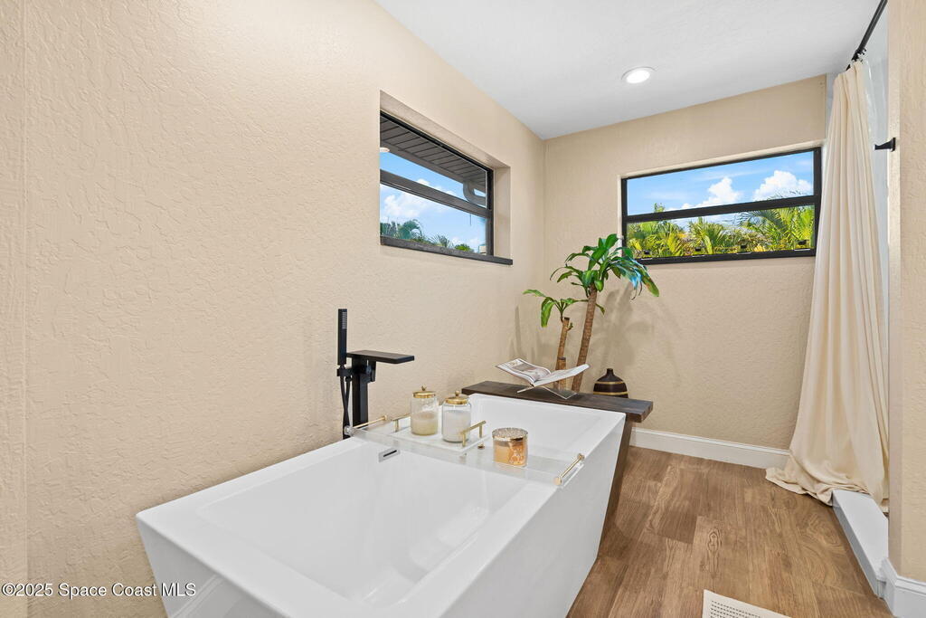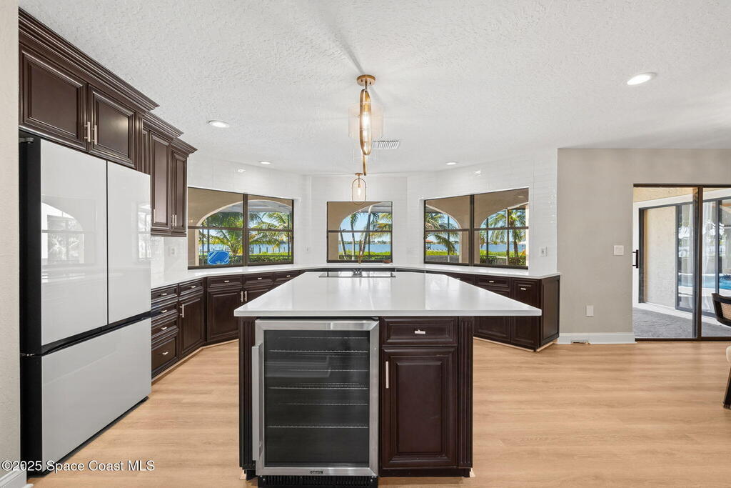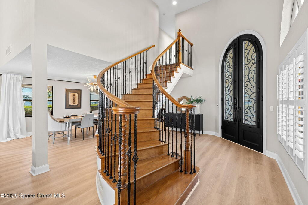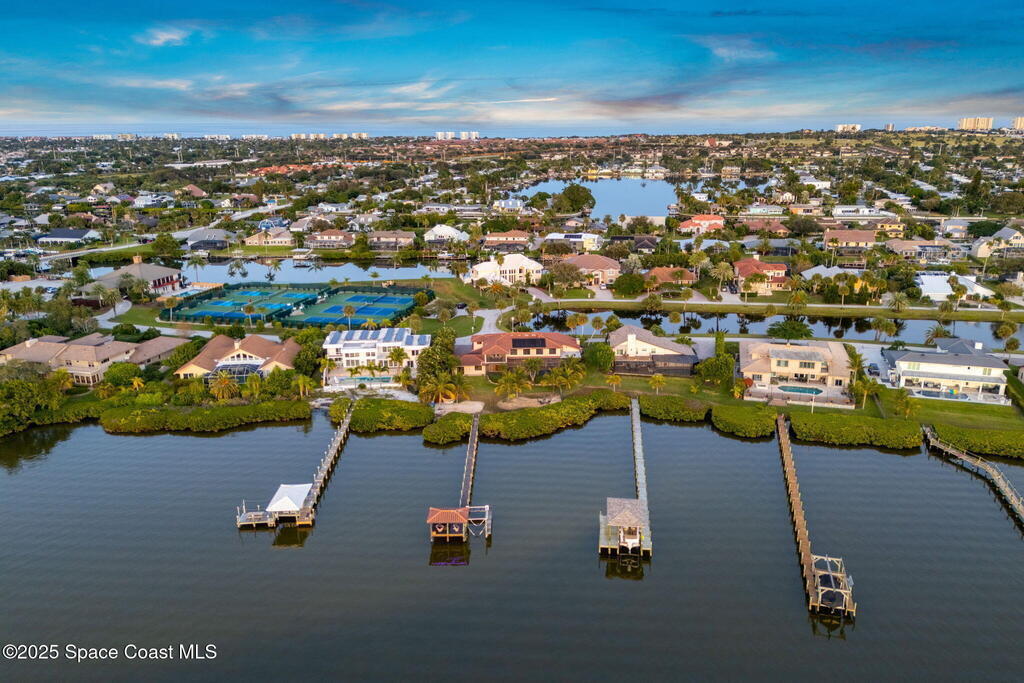 Welcome to a true waterfront retreat on the coveted Tortoise Island, offering 120 feet of direct Banana River frontage, stunning sunsets, and water views the moment you step inside. The home has been tastefully renovated throughout, and nearly every room overlooks the river through expansive windows that fill the interiors with natural light. The main living area features soaring vaulted ceilings and a wall of glass that frames the water from the kitchen, family room, dining area, and more. Upstairs, the primary suite feels like a private escape with its own screened-in balcony, a renovated spa-like bath, and a custom walk-in closet. All bedrooms throughout the home are exceptionally spacious with comfortable layouts and beautiful natural light.The kitchen blends style and function with a large quartz island, modern appliances, a separate butler's pantry and coffee bar, and a wet bar ideal for entertaining.