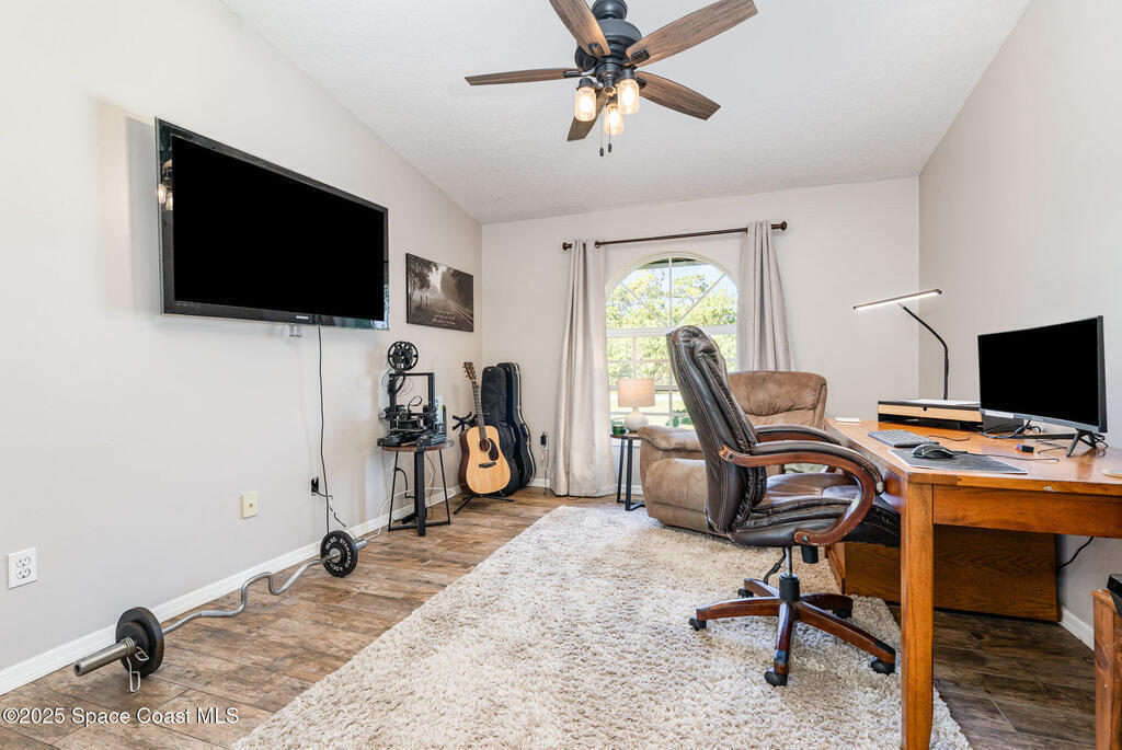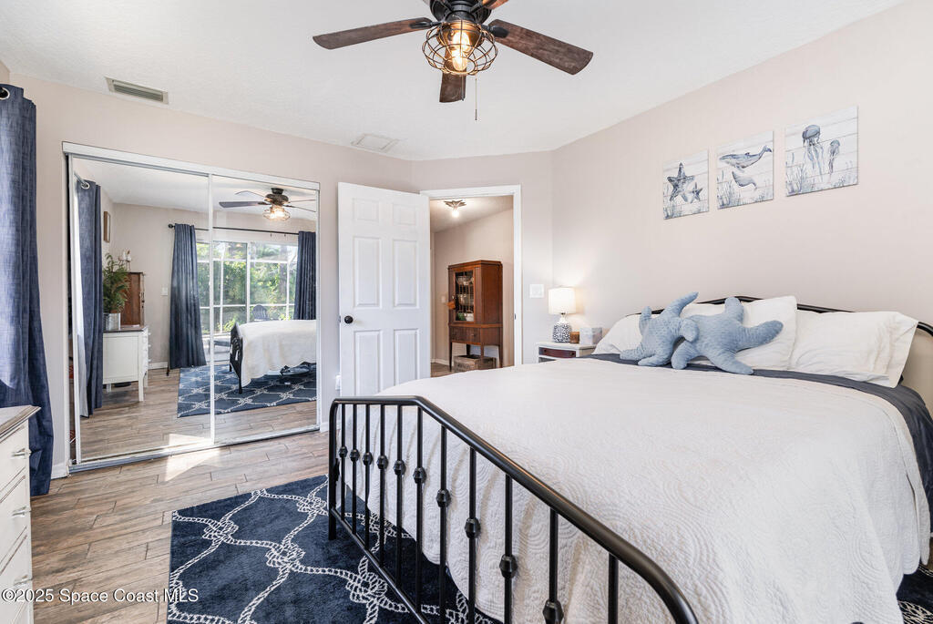 Welcome to your private Florida retreat on a full acre in one of Melbourne's most peaceful, sought-after areas. This updated 3-bed, 2-bath home with a large office (or 4th bedroom) blends modern comfort with quiet country living. An airy, open layout features wood-style tile, recessed lighting, and a warm aesthetic. The kitchen offers granite counters, stainless appliances, and ample storage, while both bathrooms feel spa-like with stylish tile and quartz.Major upgrades include a 2024 roof and AC, 2019 plumbing, 2021 water heater, 2025 pool pump, and a 50-amp EV charger (2025). Outside, enjoy an expansive screened pool deck, garden beds, and a chicken coop--your turnkey homestead. Experience serene country living just minutes from shopping, dining, beaches, and all Melbourne offers. This home delivers space, privacy, upgrades, and effortless indoor-outdoor living.