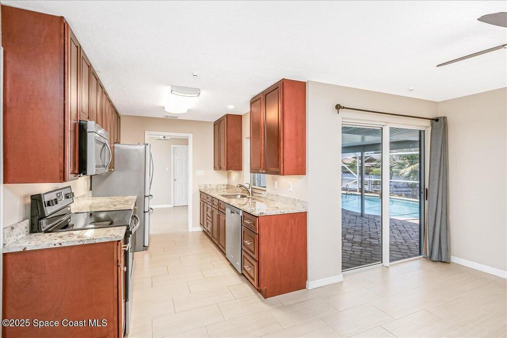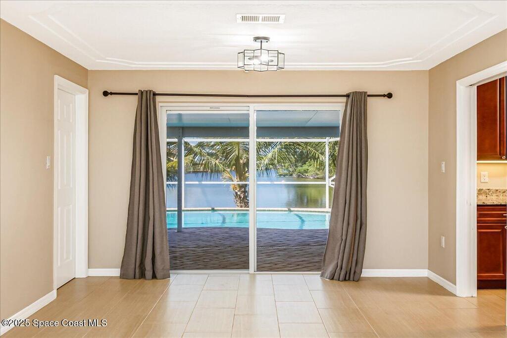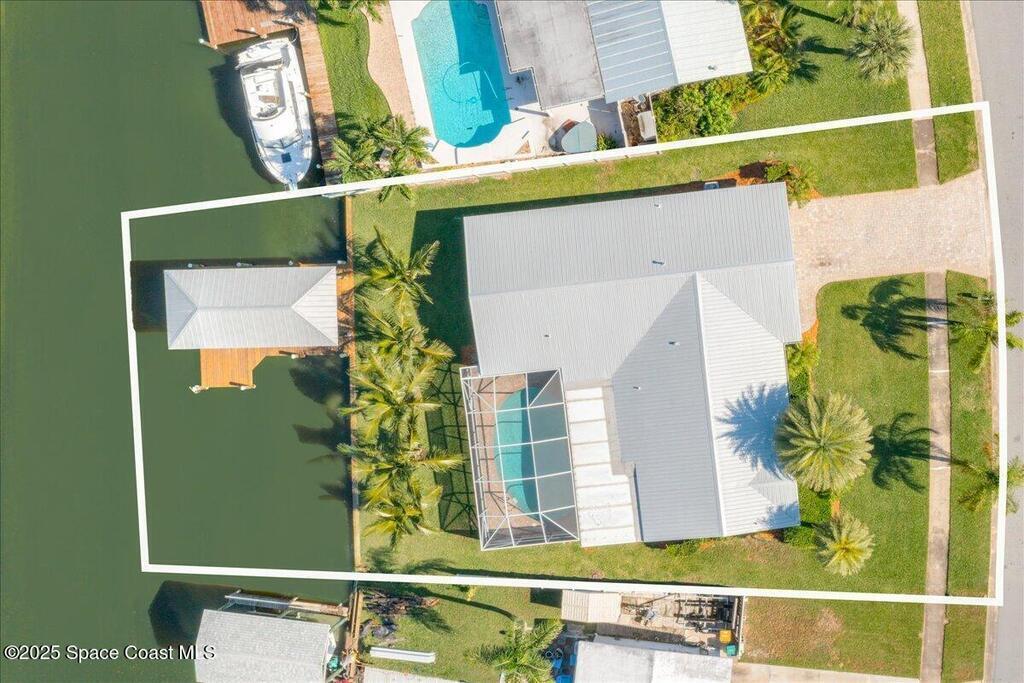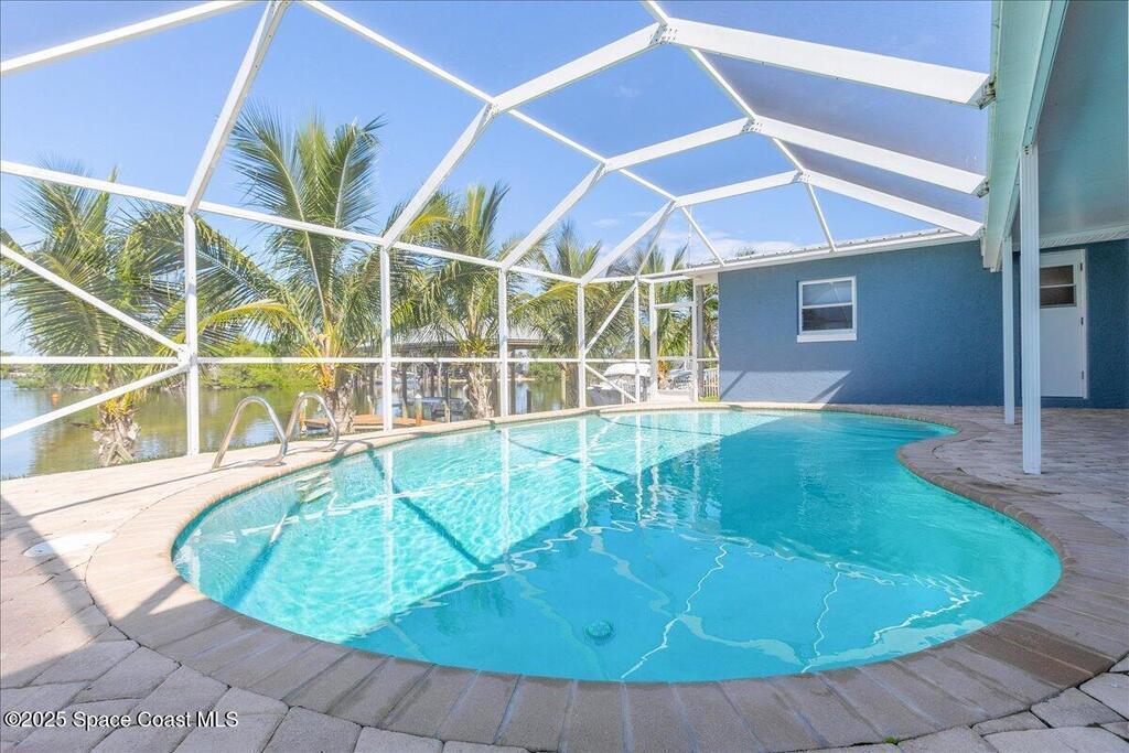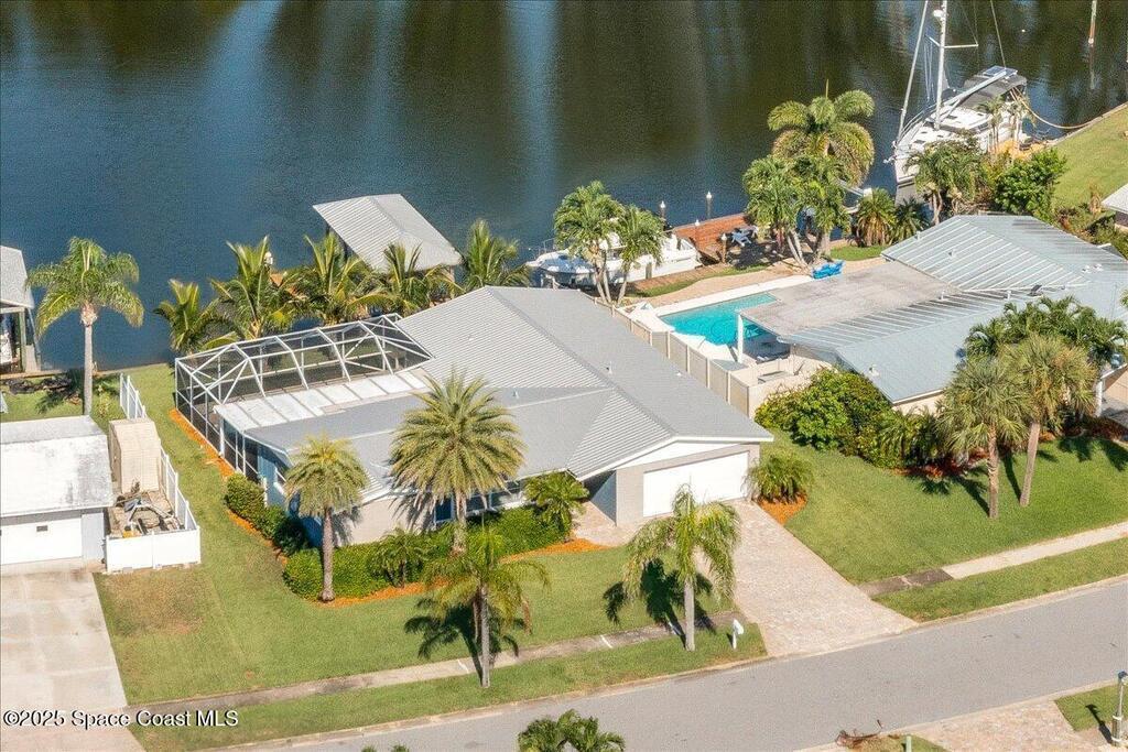 Grand Canal Pool Home with 8,000lb Covered Boatlift (new in 2022) Perfect for boating enthusiasts and waterfront relaxation.Unique Lot with direct access to the Banana River.This beautifully renovated pool home offers a desirable split-bedroom floor plan for added privacy, and a modern kitchen complete with granite countertops and stainless steel appliances.Step outside to the paver patio and enjoy tropical canal-front views, a sparkling pool and covered porch.Low maintenance home with updated electric and plumbingLocated just minutes from the beach, Patrick A.F.B., and premier shopping and dining, with easy commuting via the Pineda Causeway and A1A.Updates include new A/C 11/2024, all Cast Iron replace in 2022, new 8000lb Boat Lift 2022Metal Roof 2016