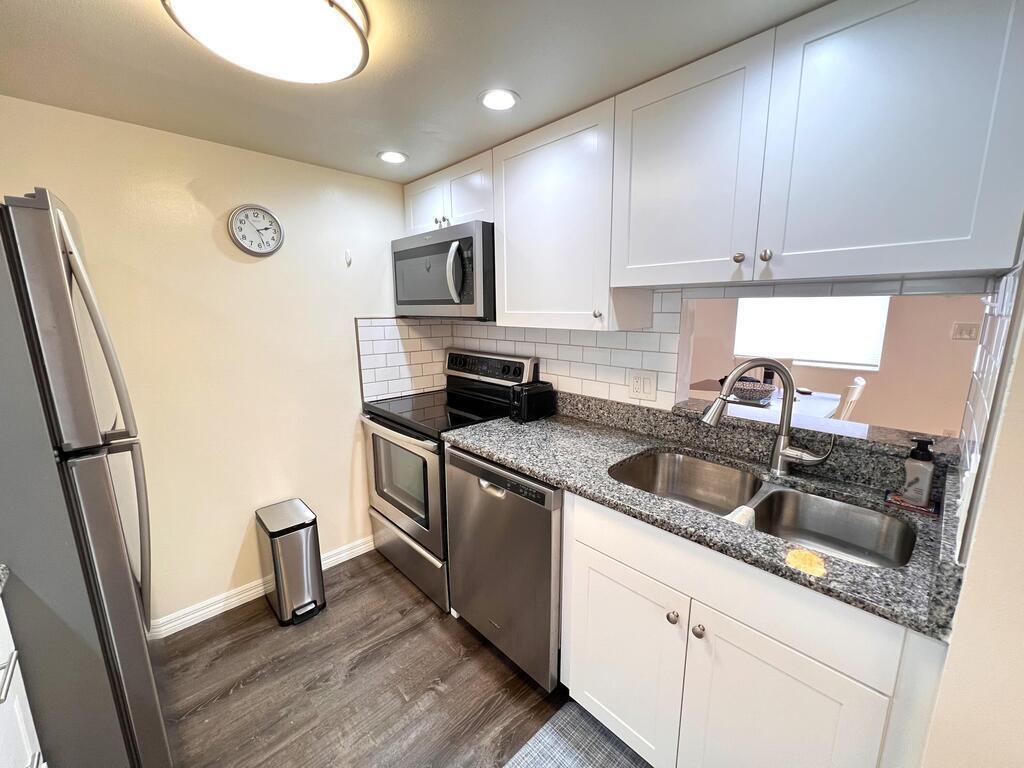 Dishwasher , Electric Range , Microwave , Refrigerator , Washer/Dryer Stacked