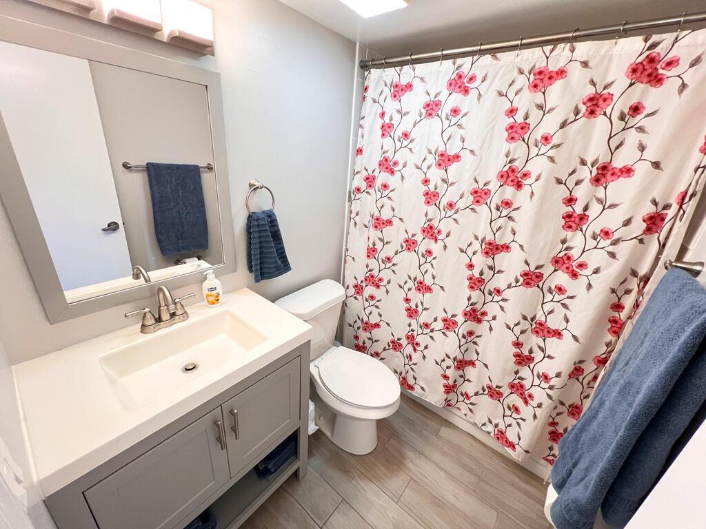 Updated remodeled 2 bedrooms/ 2 bathrooms townhouse in Cape Canaveral. Fully furnished with modern decor & light fixtures, flat TV screens, washer & dryer in unit, assigned parking; fully equipped kitchen with stainless steel appliance, breakfast bar, bright & airy, private patio with outdoor furniture, walk-in shower in master suite, no pets, and no smoking. Villages of Seaport complex offers private beach access, gated community, tennis court, exercise room, in-ground heated community pool & hot tub, vehicle wash, and guest parking. The perfect beach gateway for vacation/ or business travelers. Excellent location with easy access to Port Canaveral, downtown Cocoa Beach, Kennedy Space center, amenities & services, shopping centers, restaurants, Publix grocery, and just an hour to Orlando & attractions.