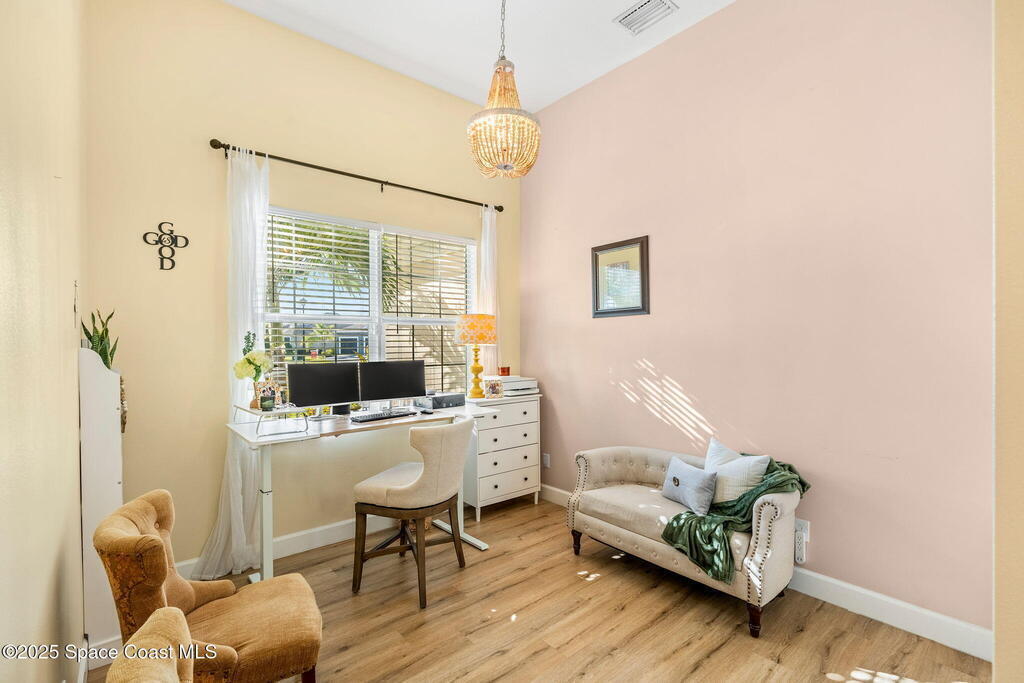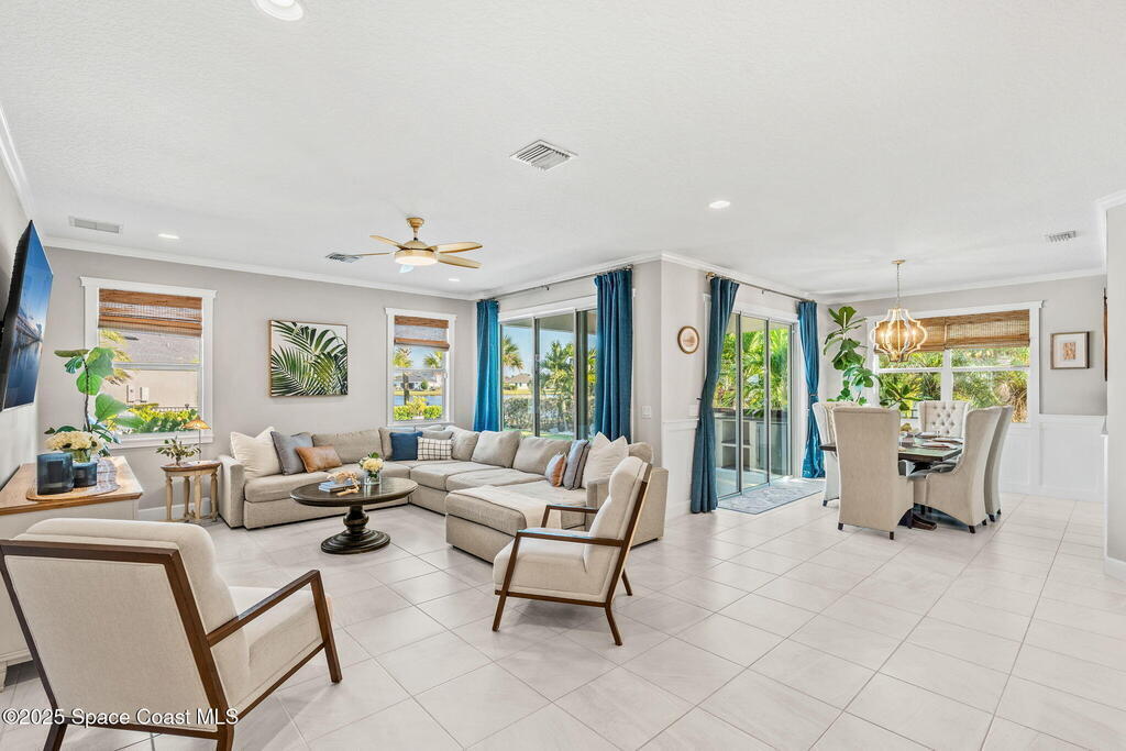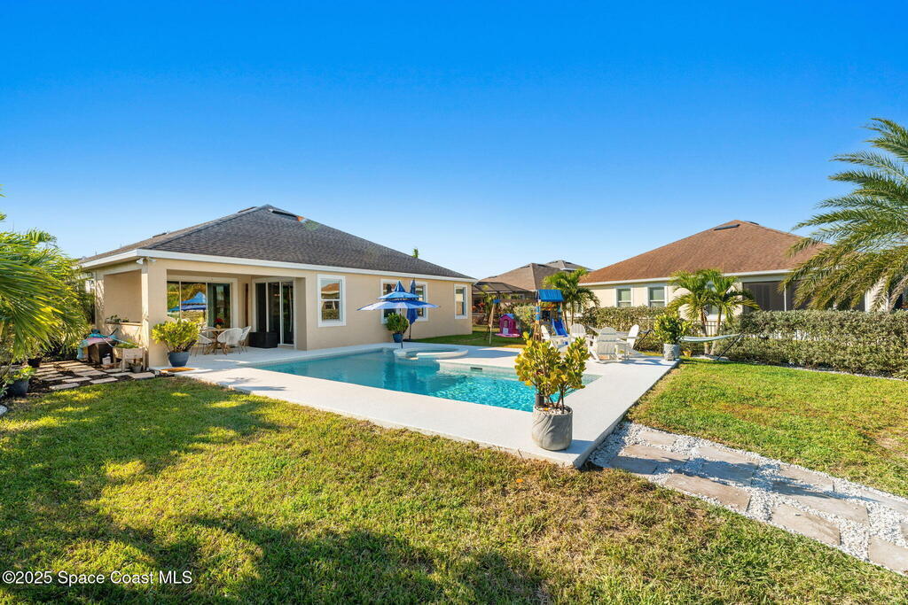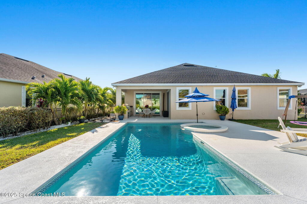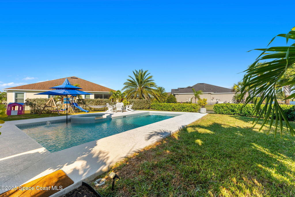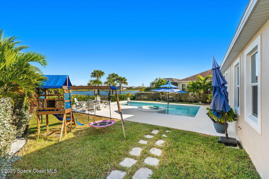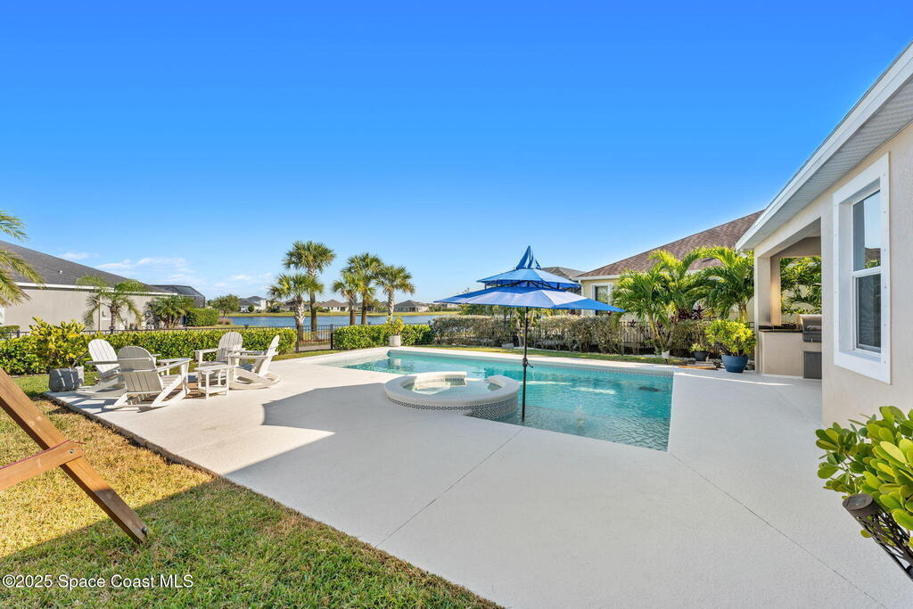 Hello to the Siesta Floor Plan!This impressive waterfront heated pool home is located in the highly desirable Trasona community of West Viera! Offering 4 bedrooms, 2 bathrooms, and a spacious 3-car garage across 2,154 sq. ft. of comfortable living space.Step outside to your private oasis featuring a 15x30 heated saltwater pool and spa, already equipped with footers for a future screen enclosure. Inside, enjoy a no carpet design: beautiful tile flooring highlights the main living areas and kitchen, while high quality LVP adds warmth and durability to all bedrooms.The fenced backyard provides peaceful water views, perfect for morning coffee or evening gatherings. The epoxy-floored 3 car garage is an upgrade lover's dream, complete with a 240V outlet for EV charging, mini-split cooling system, and additional insulation for comfort and efficiency.