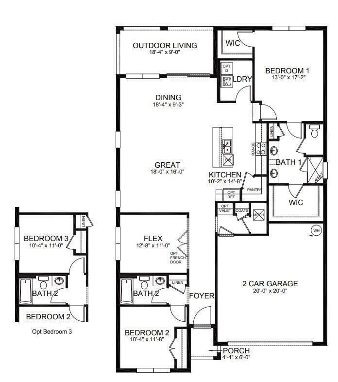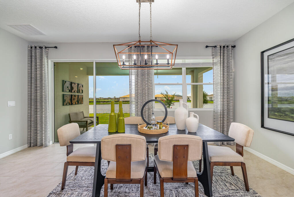 The Clifton is a beautiful one-story home in Cypress Bay West, Palm Bay, Florida, built with durable concrete block construction. This 3-bedroom, 2-bathroom home offers 1,816 square feet of living space, a two-car garage, and a covered rear porch. The open-concept design features oversized tile flooring in the main living and wet areas. The spacious kitchen boasts an island with bar seating, quartz countertops, an oversized undermount sink, ample cabinet space, and stainless-steel appliances--perfect for entertaining. The dining and great room are filled with natural light from large windows and sliding glass doors leading to the expansive covered lanai. The primary suite includes an en suite bath with double undermount sinks, quartz countertops, and a walk-in closet. Two additional guest bedrooms and a full bath complete the home. The Clifton also includes the Home is Connected smart home package, allowing control of your home from anywhere