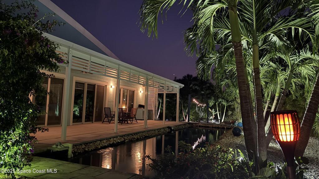 An innovative oasis engineered with absolute efficiency and serenity in mind. Nestled in Melbourne Beach, this rare open concept residence blends big city sophistication and small beach town perfectly. Backing directly to the Indian River Preserve State Park, your quiet enjoyment is permanently protected. Take a plunge in blue lagoon style pool surrounded by lush fruit trees and low maintenance landscaping. You'll enjoy built in luxury appliances from Bosch along with Energy Star rated washer-dryer, water heater, and HVAC. Smart home capabilities throughout for effortless control through voice command or at the touch of a button. Both walls and roof are sealed with Hy-Tech, a NASA spin-off technology that reduces heat transfer and dampens sound. A true Space Coast stand out feature! 15 Minutes from world class fishing at Sebastian Inlet and optional private beach access at the end of the street. This home pairs modern design functionality in a setting that remains beautifully untouc