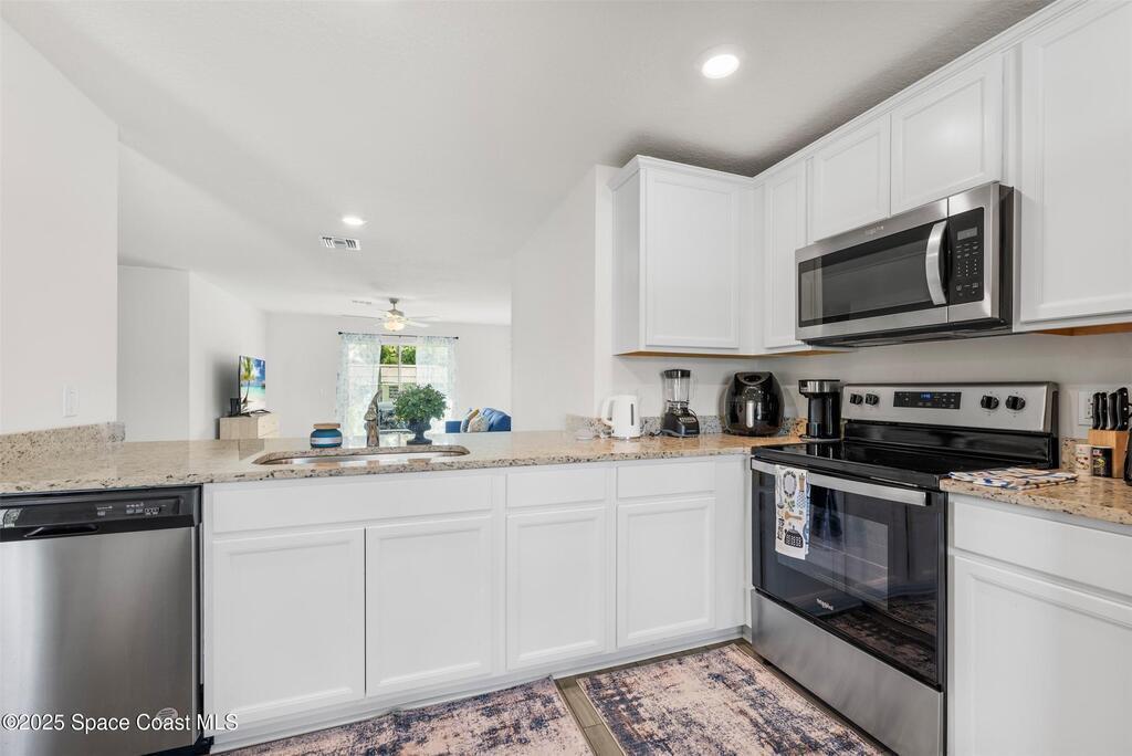 This beautifully appointed single family home is now available for sale and offers a perfect blend of comfort, style, and convenience. Situated on a spacious corner lot, the property comes fully furnished and features new energy efficient Whirlpool appliances, granite countertops, and an attached two-car garage, combining modern design with everyday functionality. The generous primary suite, inviting dining area. Located in the highly sought after Palm Bay area, residents will enjoy close proximity to golf courses, world-class beaches, and amenity rich parks, making this home an ideal choice for those seeking both relaxation and an active Florida lifestyle.