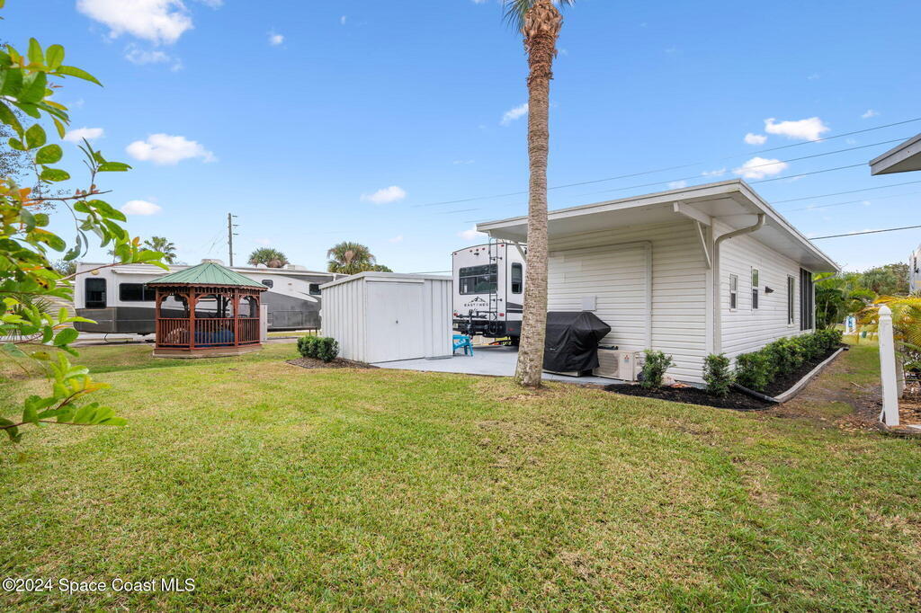 BEAUTIFUL MOVE IN READY ''GREAT OUTDOORS RESORT'' PROPERTY! UPDATED EXECUTIVE SUITE WITH RV PARKING WITH HOOKUPS! LARGE NEWLY LANDSCAPED BACK AND FRONT YARD! VINYL WOOD FLOORING THROUGHOUT! SPACIOUS SHED FOR STORAGE. WASHER AND DRYER IN HOME STAYS! WALKING DISTANCE TO ALL AMENITIES! LOT IS 78FT X 18 FT. FULL KITCHEN AND BATH WITH MITSUBISHI AC SPLIT SYSTEM. BONUS ROOM INCLUDED!! . LANDSCAPING IN FRONT AND BACK IS GORGEOUS! COMES WITH LARGE SCREENED IN PATIO. TONS OF AMENITIES OFFERED IN COMMUNITY INCLUDING RESTAURANT, CHURCH, POST OFFICE, 2 POOLS, 2 HOT TUBS,LIBRARY, GYM AND FREE CLASSES, TENNIS, PICKLEBALL, DOG PARK, SHUFFLEBOARD, BOCCE , RV REPAIR CENTER ONSITE, LARGE EVENTS CENTER, GOLF COURSE, LIBRARY,NATURE TRAILS, AND 31 STOCKED FISHING PONDS. LAWN CUTTING AND FERTILIZATION, WATER/SEWER AND INTERNET INCLUDED!! BEAUTIFUL VIEWS OF LAUNCHES! CLOSE TO SPACE CENTER, BEACHES AND ORLANDO AIRPORT!!