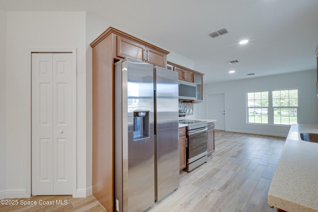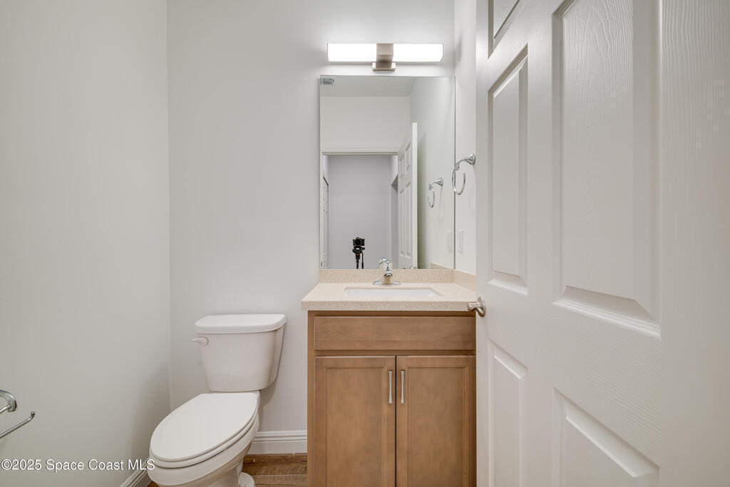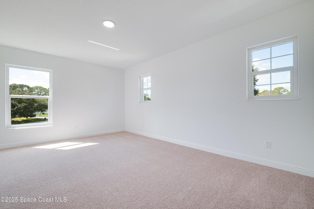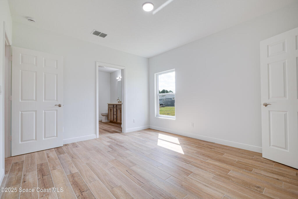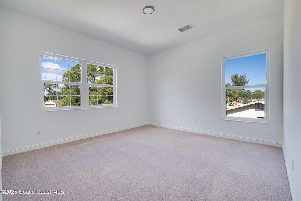 New construction with meaningful upgrades: CBS on BOTH floors, impact windows, city water, and an oversized lot. The primary suite is on the first floor with a soaking tub + walk-in shower offering luxury amenities, privacy & convenience. Upstairs, you'll find exceptionally large bedrooms (rare in Florida new construction). Features include wood-plank tile, a welcoming front porch, and a covered + screened back porch for true Florida living. Located in one of Palm Bay's fastest-growing areas, close to parks, schools, and daily essentials. Solid construction, smart layout--come see it in person.