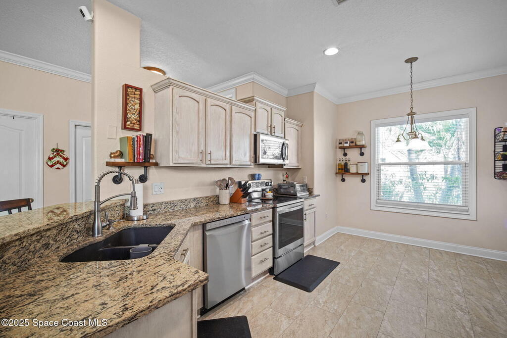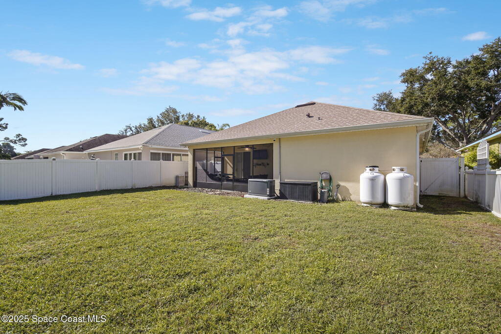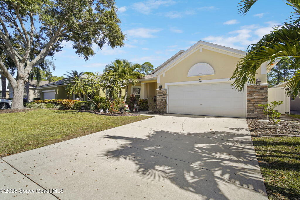 Well maintained 3 bedroom, 2 bath split floor plan home in La Cita offering over 1,600 sq. ft. of living space. This home features granite counters throughout, impact windows, vinyl plank flooring, and an open, functional layout with a private primary suite separated from the additional bedrooms. The screened lanai provides a comfortable outdoor living space, and the backyard is fully enclosed with a vinyl privacy fence. Recent major updates include a 2024 roof, 2020 HVAC system, 2024 water heater, and a whole-home gas generator installed in 2025. Located in the desirable La Cita community, this property is move-in ready and conveniently situated near local shopping centers. Waterside at La Cita HOA includes lawn care!A short drive to the Kennedy Space Center, or watch rocket launches from your backyard! This home is truly turn key and ready for your family.