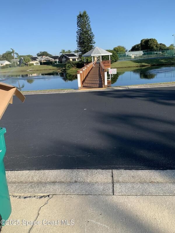 A SnowBirds Dream.This serene home features: 3 bedroom split plan, 2 baths, 2 car garage with views of the lake. Screened porch with vinyl windows and Window AC. From your front door, walk across the bridge over the lake to the club house with full kitchen and Fireplace, pool, indoor pool spa, killer Gym., Dry Sauna,Tennis Courts, and Shuffleboard, PLUS Free RV Parking. Many activities in this Gated Community. Dues are $112/month which includes lawn service. Don't miss this one. Priced at Appraisal. Copy in Office. This is priced to sell AS-IS. PLUS: New Roof 1-2022, Re-plumbed 8-2024, Inside AC (Air Handler) 2020