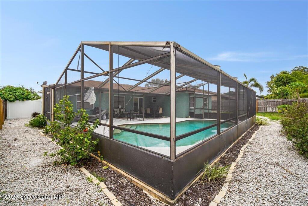 Beautifully renovated 4 bed, 2 bath pool home just 4 miles from the beach! This versatile property is perfect as a turnkey Airbnb, long-term rental, or primary residence. VA assumable loan available at 4.13%. Enjoy major upgrades including a 2023 AC, all-new ductwork (2025), and a new pool pump, filter, and chlorinator. The fenced backyard features a screened pool enclosure, and with no HOA, no deed restrictions, and no flood insurance required, you'll have total flexibility. Inside offers LVP flooring, white shaker cabinets, quartz countertops, stainless steel appliances, modern fixtures, LED lighting, and new blinds. A bright, open layout provides pool views from the kitchen, living, and dining areas. The large driveway offers room for boat parking. Located on a quiet street close to parks, trails, schools, hospitals, shopping, and restaurants. Don't miss this beautiful modern coastal retreat!