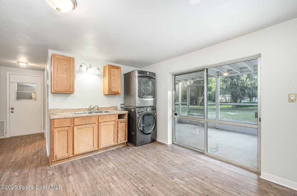 Discover this charming 2-story brick home offering 2,192 SF of comfortable living on a spacious .37-acre, tree-lined lot just minutes from Cocoa Village and the Indian River. Featuring 4 bedrooms and 3 bathrooms, this home includes a screened second-floor porch off the kitchen, perfect for relaxing or entertaining. The updated kitchen (2022) boasts custom cabinetry, quartz countertops, stainless appliances, and two dishwashers ~ ideal for busy households! Recent upgrades include ALL NEW ductwork and HVAC (2025), fresh interior paint (2025), retextured ceilings (2025), new flooring in the downstairs bedroom (2025), and a newer roof (2021). Enjoy an updated entryway, a 2-car garage, and no HOA restrictions. Washer and dryer convey. Original bathrooms provide the opportunity to renovate to your taste and create your personalized modern retreat.