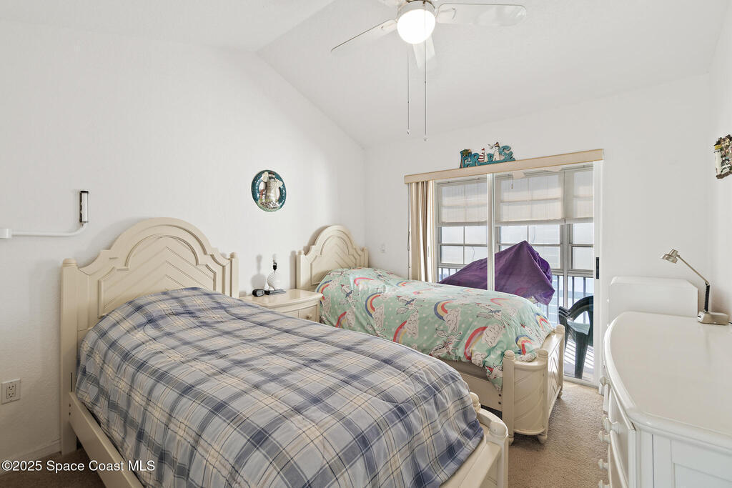 Step into relaxed beachside living at the Villages of Seaport. This fully furnished, move-in ready 2-bedroom, 2-bath second-floor condo offers an inviting retreat just steps from the ocean. The vaulted ceilings create an open, airy feel, and the screened balcony becomes your personal spot for morning coffee or winding down after a day in the sun. From the front of the condo, you'll have a perfect vantage point for rocket launches, adding a unique touch to your coastal lifestyle. Inside, the condo features a comfortable mix of tile and carpet, a bright kitchen with a decorative sunlit window, and a dining area featuring a beautiful bay window, ideal for casual meals or game nights. Living at Villages of Seaport means every day can feel like a vacation. Enjoy multiple pools, tennis and pickleball, racquetball, a fitness center, and private beach access, all within a secure, gated community.