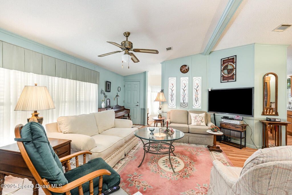 Check out this lovely property offering 2 bedrooms, 2 bathrooms, an indoor laundry room (washer and dryer included), and a screened back porch that includes a convenient storage room. Home also features a 2020 roof and a replaced electric service pedestal this year (2025). The porch was enclosed to create additional enclosed space (not under air). You'll also love the spacious master bedroom, which features a vaulted ceiling, a walk-in closet, and a walk-in shower. The living room also has a vaulted ceiling giving the home an open and airy feel. The kitchen is beautifully appointed with ample cabinets and counter space, plus an over-the-range microwave for added convenience. The home is equipped with ceiling fans throughout, skylights for natural light as well as metal awnings over select windows. Property survey on file. Schedule your viewing!