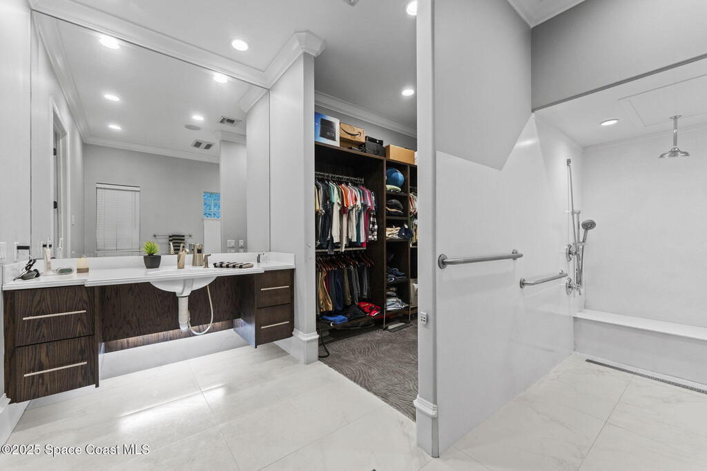 Customized Home With Lavish Finishes & Upgraded Handicap Accessibility Features Throughout! The 7,100sf Grand Spread is Situated on 3.97 Acres & Surrounded by Windover Farms Bird Sanctuary. Gorgeous Polished Tile Floors, Trey Ceilings, Crown Molding, Sophisticated Lighting, Rare & Exotic Stones. Attractive Living Room, Lounge & Bar That is Perfect for Entertaining! The Kitchens Natural Light, Sleek Cabinetry, Rare Granite, Monogram Appliances & Butlers Pantry is a Show Stopper! 3 Master Bedrooms - Main Suite has a Private Sitting Room w/ Gorgeous Nature Views. The Second Suite Is Equipped w/ Handicap Adaptations - Walk-In Tiled Shower & Powered Wardrobe. No Thresholds Throughout the Home! Third Master Suite is off the 2-Car Garage. Two More En Suite Bedrooms w/ Amazing Finishes. Continue to Entertain on The Patio - Koi Pond, Fountain, Stone Fireplace, Summer Kitchen, Travertine Floors, Automatic Shutters & Room For A Pool! So Many More Features! Home is Being Sold Fully Furnished!