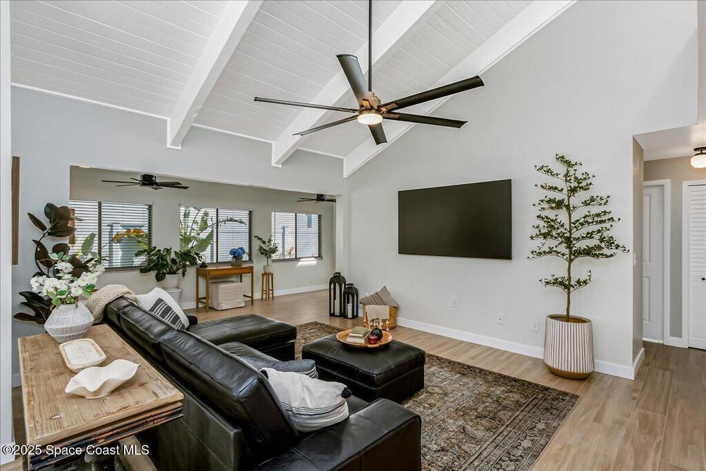 Located in the Heart of Suntree, discover modern elegance in this rare, completely renovated 3 bed / 2 bath home, where sophisticated design meets unparalleled comfort. The bright and open split floor plan with beautiful cathedral ceilings is perfect for entertaining family and friends. The kitchen, dining, and living room transition effortlessly to the sunroom out to the outdoor patio; Perfect for big gatherings! Every detail has been considered in this exquisite renovation, from the elegant porcelain tile flowing seamlessly throughout the entire home, to the array of high-end finishes making the kitchen a chef's oasis. Relax in the deep soaking tub, or on the oversized outdoor patio. This stunning home offers a lifestyle of luxury and convenience. New roof and hurricane-rated insulated garage door in 2023, HVAC 2024, water heater 2025. New kitchen 2025 with soft close cabinets, custom Venetian plaster vent hood, European fireclay farmhouse sink, stainless steel appliances,