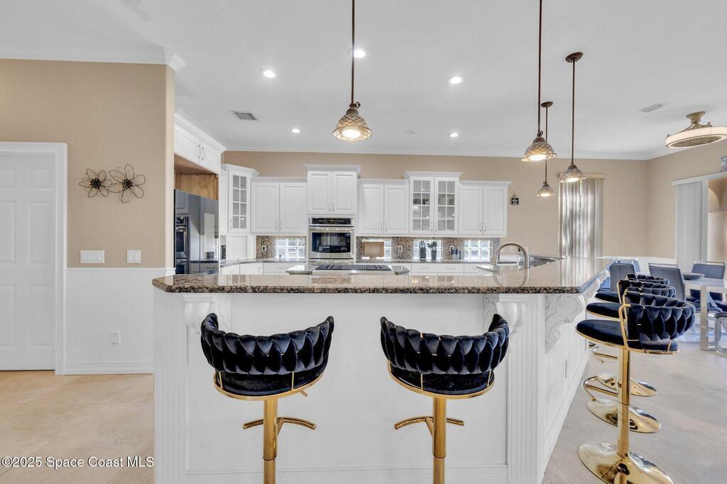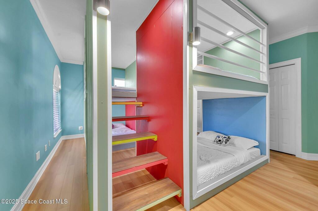 Come live the luxury Cocoa Beach lifestyle right on the Banana River!! Gaze out onto the panoramic mangrove views or watch the dolphins swim by from your new private boat dock with a boat lift & deep water access. Peace of mind included with a new seawall for the 250 ft of riverfront. Relax by the saltwater pool with spa planning your day at the beach only a few blocks away. This showstopper of a home has plenty of space with 7 bedrooms (2 on the lower level, one upstairs full of bunkbeds) 4.5 baths and just under 5000 sq ft of living space. Not to mention the chef's dream kitchen with gas stove and huge kitchen island. Large 3 car garage with Tesla charger. Hop on your golf cart and cruise to nearby Downtown Cocoa Beach for dining, entertainment and the monthly Friday Fest street festival held on the 3rd Friday of every month. This is the largest home and lot in the Sunset Cove Community. Make your dream beach living a reality today!