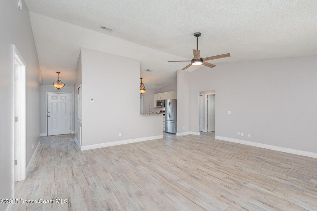 Welcome home to a charming 3-bed, 2-bath single-family Rockledge home designed for Florida living. Step inside to an open floor plan with vaulted ceilings and all wood-look tile, creating an airy atmosphere where the kitchen and living areas flow easily. The updated kitchen includes granite, stainless, an eat-in space and two pantries. A versatile flex space near the kitchen is perfect for a formal dining room or home office.The primary bedroom features a large walk-in closet and a dedicated bathroom. Two additional bedrooms and a second full bath complete the interior.Outside is your private, screened oasis: a recently refinished swimming pool enhanced by a beautiful waterfall feature and a spacious covered lanai for year-round relaxation and entertaining. Located in the desirable Rockledge area, this home offers easy access to local amenities, beaches and all area attractions. It promises an unmatched indoor-outdoor lifestyle. Don't miss this peaceful retreat!