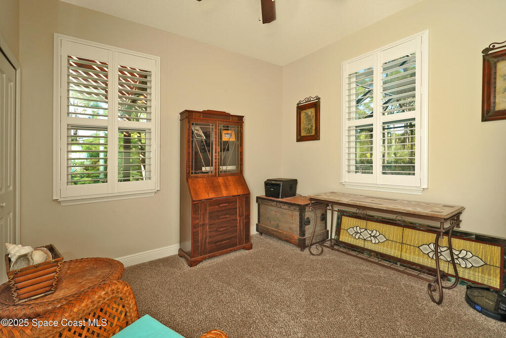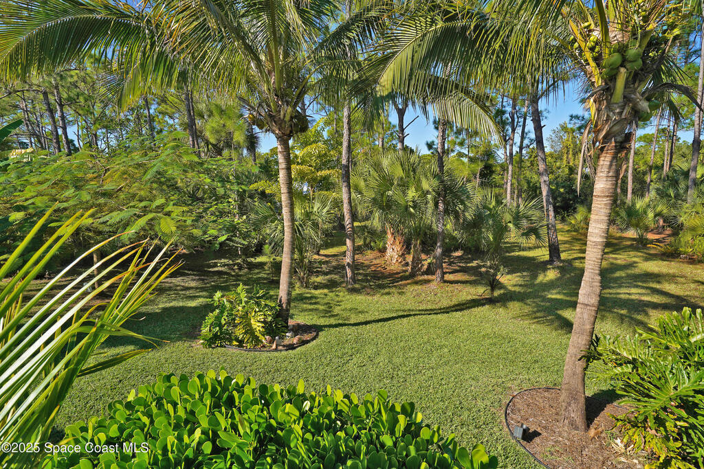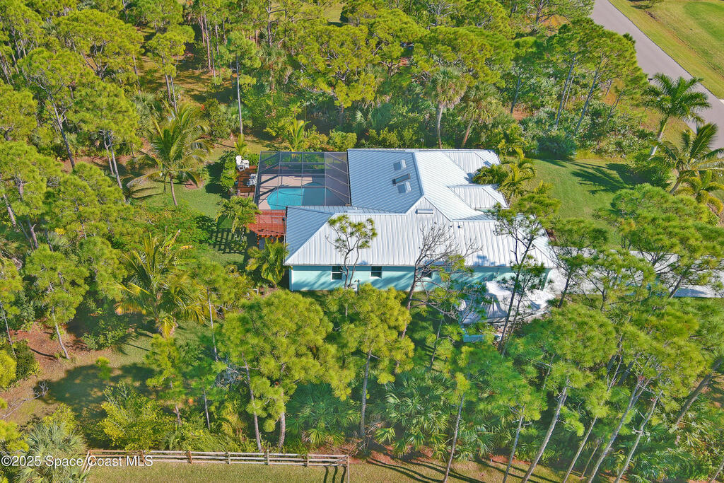 Fantastic pool home set in a private tropical setting. This well-maintained 3BR split plan features a spacious primary suite with his-and-hers walk-in closets, a large bathroom with garden tub, and a separate walk-in shower. Home offers energy-efficient double-pane windows and custom plantation shutters. Metal Roof for years of maintenance free living.Upgraded water system includes a peroxide injection filtration system plus reverse osmosis at the kitchen sink and refrigerator. Kitchen features granite counter tops and all appliances.Enjoy the screened back porch overlooking a screened pool with waterfall. Additional outdoor features include a small wood deck, separate portico, custom equipment shed with deck and fire pit, and RV/boat parking area. One-acre lot with mature tropical landscaping and a full sprinkler system. Paver driveway completes this private tropical oasis.