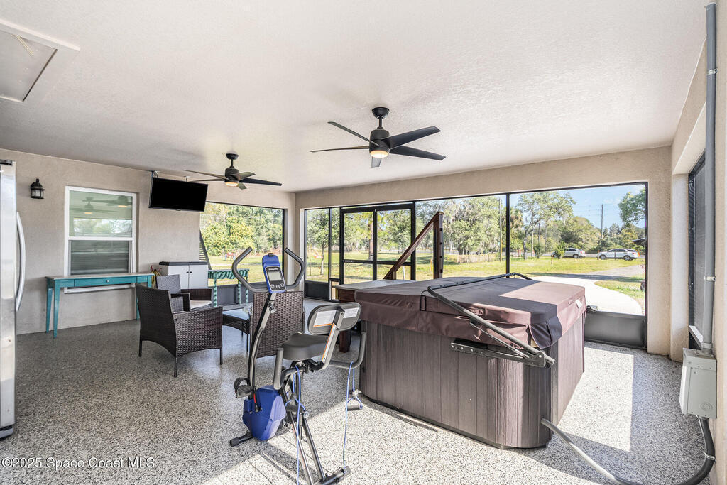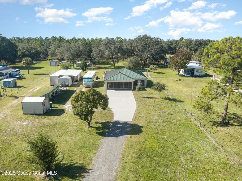 Country living at its best! This like-new block home, built in 2023, offers peace, privacy, and modern comfort. Inside you'll find 2 bedrooms, 2 baths, granite countertops, stainless steel appliances, soft-close all-wood cabinetry, and a mix of laminate and tile flooring. The home is built to last with a metal roof and hurricane-impact windows, plus it includes a detached solar system, two wells, and wiring for a generator. Enjoy outdoor living on the large front screened porch with shark-coated flooring, and relax in the hot tub that stays with the home. The property is fully fenced with an electric gate and features a 50-amp RV hookup, chicken coop, separate shed, and a large workshop area--perfect for hobbies, storage, or equipment. A true country retreat with all the modern upgrades! Many more features.