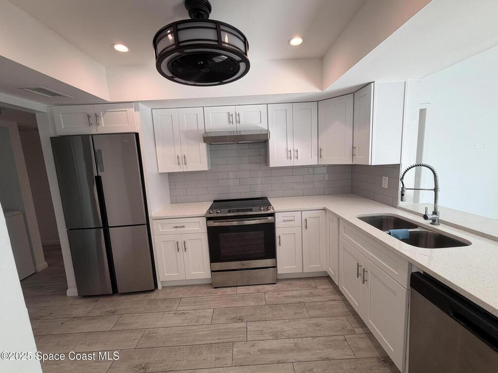 This unit is exceptionally spacious and has been fully remodeled, featuring new tile flooring throughout, updated vanities and fixtures in the bathrooms, and a brand-new kitchen with new cabinets, appliances, and quartz countertops. The location is unbeatable: - It is an oceanfront complex with direct beach access and steps from the Pier. - The unit is right next to the pool, offering a great view from the patio window and giving the pool an almost private feel. Additional amenities include a washer and dryer in the unit, and a highly desirable one-car attached garage--a true rarity in Cocoa Beach. The tenant is responsible for electricity; all other utilities, including water and Internet, are paid for by the landlord.