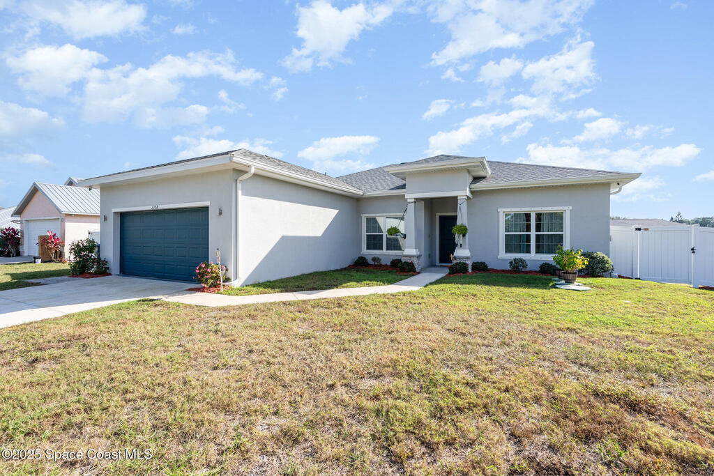 Beautifully maintained 4 bed, 3 bath CBS home in desirable SE Palm Bay featuring paid-off 2022 solar panels with a transferable 25-year warranty, keeping electric bills around $30/month. Fully fenced yard and screened, trussed back porch.Enjoy a true smart home with a Bolt Technologies security system, 6 cameras, window/door sensors, motion sensors, smart thermostat, electronic keypad entry, Ring doorbell, and Wi-Fi-enabled appliances including washer, dryer, and garage door opener. Home also includes 4 TV-mount-ready locations, HDMI in-wall wiring, and COAX ports.The kitchen offers granite countertops, solid wood 42'' cabinets with crown, and smart stainless steel appliances. The primary suite features a tray ceiling, dual closets, a soaker tub, and a tiled walk-in shower. Guest bedrooms include a shared bath with a granite countertop and a tiled tub/shower combo. Move-in ready with modern finishes throughout!