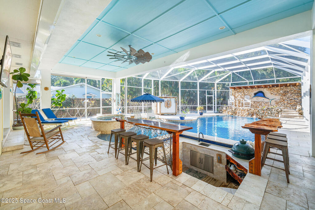 Imagine yourself living in this riverfront sanctuary with your own private dock & boat lift! An extraordinary multi-residence estate with Key West vibes offers unmatched versatility, upgrades & coastal living on the Indian River. The main home offers 3 Bedrooms/3 Bathrooms & blends modern comfort with thoughtful design, featuring river views from the porch & every room in the front of the house. Above the 3 car garage is a private 2/1 upstairs apartment with a full kitchen & living area while downstairs is a studio apartment/full bath. Enjoy the resort-style, heated pool/spa, featuring a cascading waterfall and a swim-up bar/kitchen, which is perfect for entertaining! With this home you can have a sunrise coffee or sunset tequila while kayaking your way to paradise. Features include; AC 2021, Metal Roof 2015, 2018 Generac whole home generator, Climate controlled 4th garage & Boat/RV parking! This unique riverfront property is waiting for its new owners!