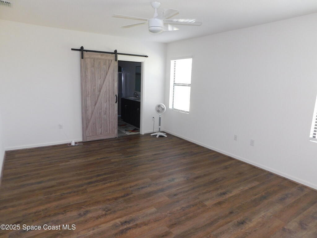 Exquisitely designed 3-bedroom, 2-bath home with over 1,700 sq. ft. of living space, built in 2020. This modern residence showcases an airy kitchen featuring a castle-style nook with a beautiful window array, elegant plantation shutters, stainless steel appliances, luxury dark wood cabinetry, and an additional banquet cabinet providing exceptional extra storage. The thoughtfully designed layout includes a private primary suite highlighted by custom, classy, barn doors in both the bedroom and bathroom, a spacious walk-in closet, a separate linen closet, and an expansive primary bath. Upgraded laminate wood flooring and tile flow throughout the home for a clean, cohesive look. True Florida living with a trussed, covered lanai and an additional 16' x 16' open patio overlooking the lush backyard--perfect for relaxing or entertaining. That's not all folks! The furniture, decor and electronics could be yours too. Ready and willing to negotiate all aspects of this lovely home!