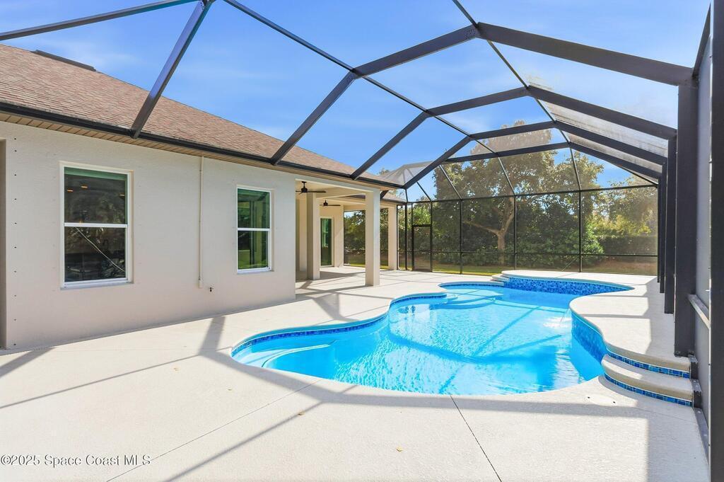 Stunning luxury home in the prestigious Oakmont Preserve, offering incredible value on nearly 1.4 acres of quiet, park-like land. This beautifully updated Lifestyle built home features soaring 15 ft ceilings, a triple-split floor plan, custom lighting, tray ceilings, rounded corners, and no carpet throughout. The large kitchen includes GE appliances, 42'' cabinets with crown, granite counters, and reverse osmosis. The new heated, saltwater pool showcases a pebble finish, waterfall feature, spacious screened enclosure, and covered patio. Enjoy a variety of tropical fruit trees throughout the property as well.Additional highlights: hurricane shutters, security system with cameras, retractable blinds, garden-style primary bath, 3-car side-entry garage with built-ins, epoxy flooring, EV charger, gutters, 2025 exterior paint, and a irrigation system that spans the property. An exceptional blend of privacy, space, and luxury.