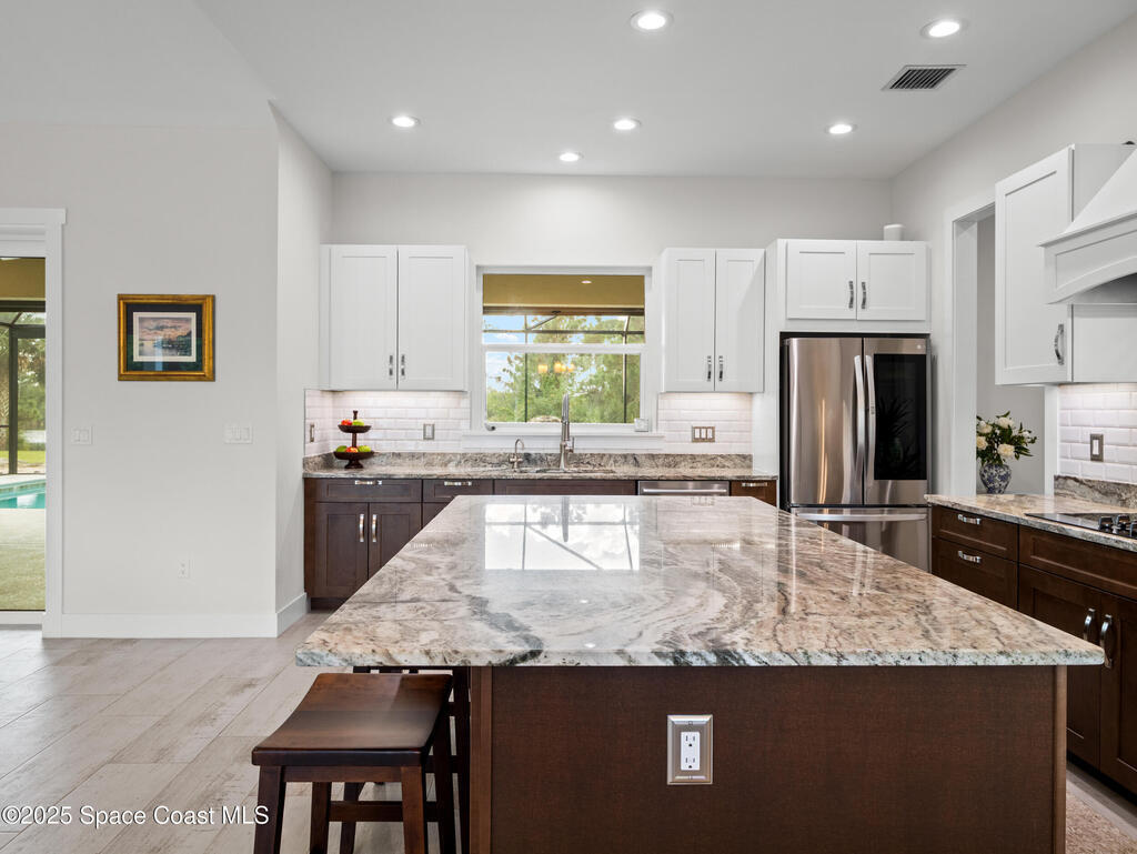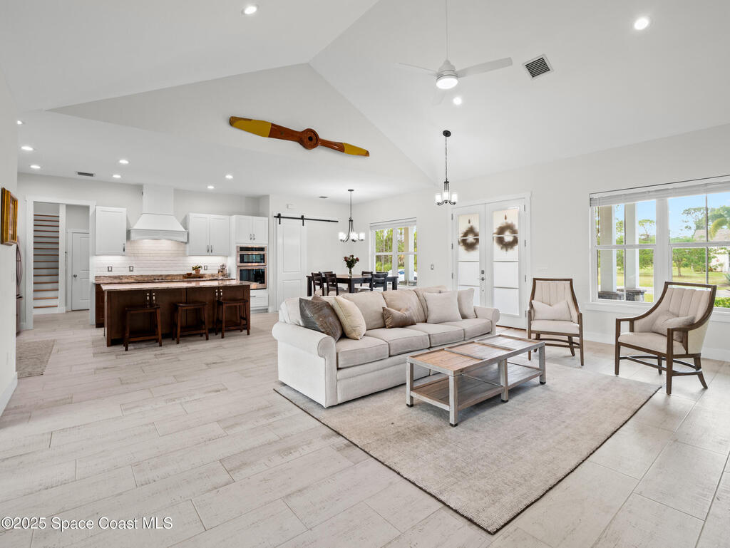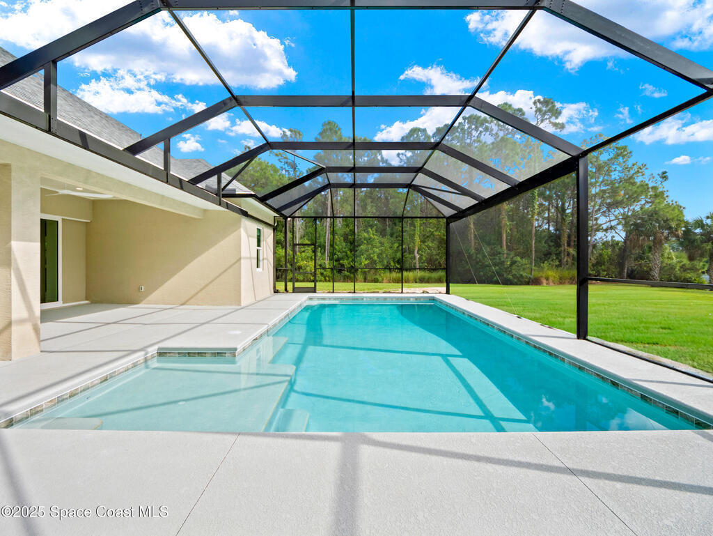 Welcome to your private country estate, set on over an acre of lush, manicured land and lined with mature trees for complete privacy and peace. From the moment you enter, your gaze is immediately drawn to the panoramic views of the sparkling new pool and the tranquil pond beyond--a showstopping scene that sets the tone for the entire home.A stately paver entrance welcomes you into an interior designed for both elegance and effortless entertaining. Throughout the home, you'll find high-end ceramic tile flooring, offering durability, luxury, and a seamless visual flow from room to room.The soaring cathedral ceilings and abundant natural light create an inviting atmosphere, but it's the chef's kitchen that truly steals the show. Featuring rich dark wood cabinetry, sleek quartz countertops, and a sink with serene views of the surrounding nature, this kitchen blends form and function beautifully.