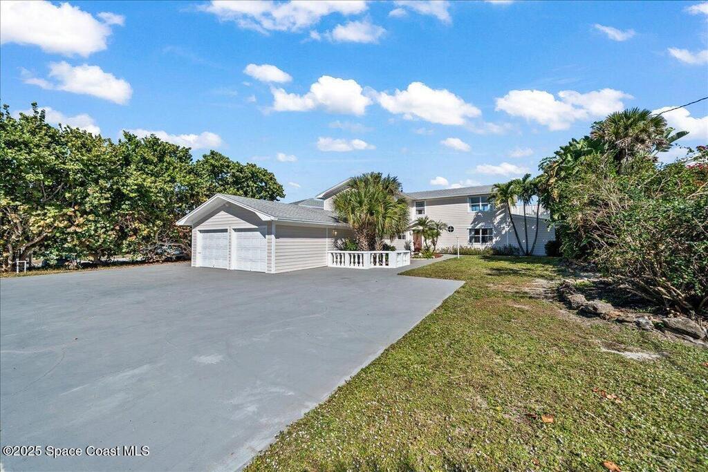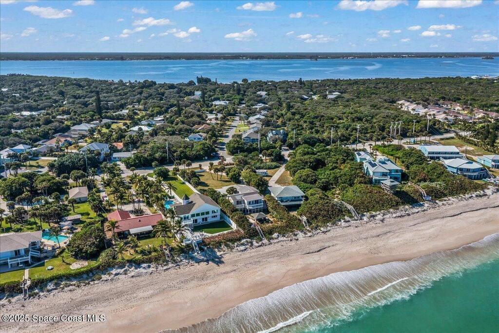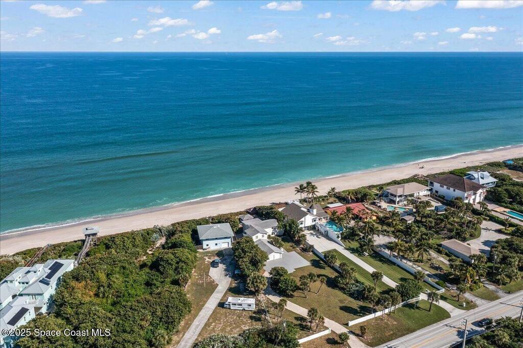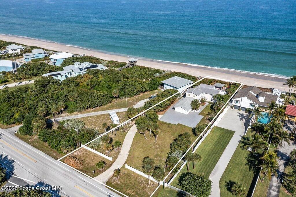 Exceptional oceanfront property offering a private coastal lifestyle on nearly .78 acres. Set well back from A1A the deep front yard creates a quiet retreat with space for a future pool, expanded outdoor living or guest amenities. A wide approach and ample parking area provide smooth access for family and guests. Along the oceanfront enjoy 48' of shoreline framed by mature landscaping for natural privacy far from public beach access and perfect for peaceful mornings beach walks and relaxed seaside living. A grandfathered oceanside gazebo with hot tub sits just steps from the dunes offering a unique spot for gatherings unwinding under the stars or watching spectacular space shuttle launches. The second-story oceanside deck provides elevated views and refreshing breezes ideal for sunrise coffee or evening cocktails. A 273 sq ft workshop with a separate entrance adds flexibility for hobbies or storage. A rare chance to enjoy space serenity and the true oceanfront lifestyle.