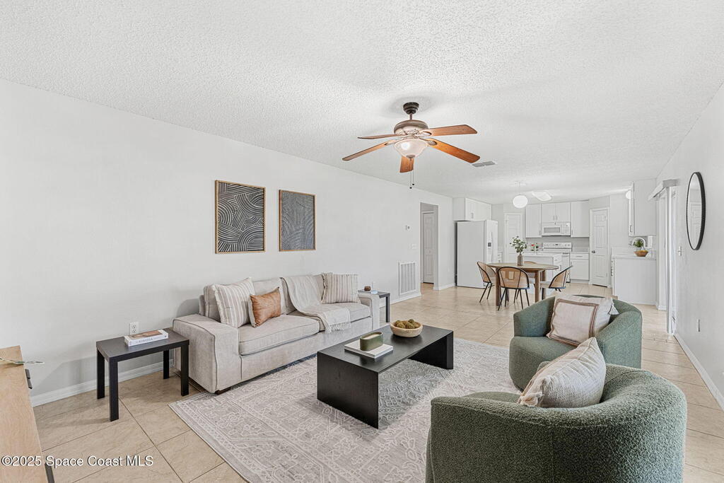 Beautiful 5-bedroom, 3-bath home located in the heart of the Space Coast. With 2,800 sq ft of spacious living it can hold the entire family with ease. New 2025 Roof and newer interior paint! Tile flooring throughout, and carpeted bedrooms for added comfort. The primary suite features a soaking tub and walk-in closets. The all-white new kitchen offers gorgeous quartz countertops, ample new cabinetry, and an island perfect for gatherings. A screened back porch provides relaxing outdoor living year-round. Located in a desirable community with low annual HOA fees, this home delivers style, space, and convenience--don't miss it! Close to schools, downtown Eau Gallie and 10 minutes to the beaches!