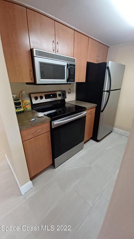Beautiful 2/1 unit in well-cared for community. Newly redone. Lovely kitchen with wooden cabinetry ans stainless steel appliances. All new paint and new tiled floors throughout all condo. Full of light with large glass sliding doors that open to your own patio with a view to garden and trees. Outside storage closet. Community pool. Reserved parking space and lots of additional parking for your guest or extra vehicles. Conveniently and centrally located to shopping, grocery, restaurants, and a quick drive to the beach and the airport. Ready for immediate move in.