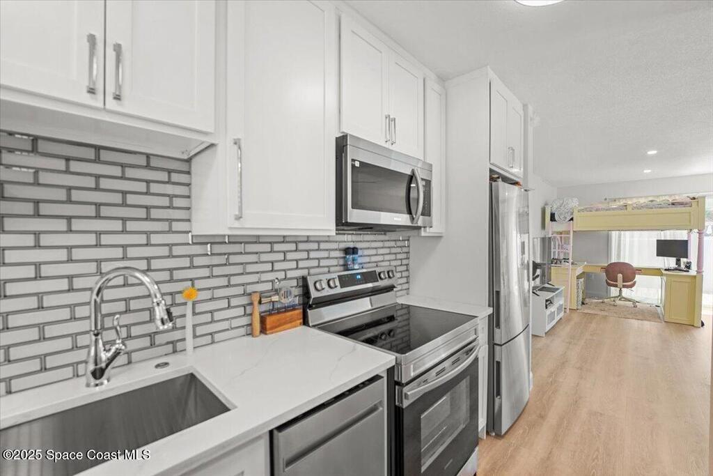 Welcome to your Fully Renovated dream beach retreat! This stunningly renovated beach studio is perfectly situated with breathtaking views of the Banana River within steps of a beautiful community pool. The sleek and updated ground floor unit features are stunning all-new stainless steel appliances with LVP Flooring throughout, quarts counter tops, New windows and HVAC. You can also relax on your very own private Patio. You will feel like you're living on vacation. You're just a short walk away from a variety of charming shops and delightful local restaurants.