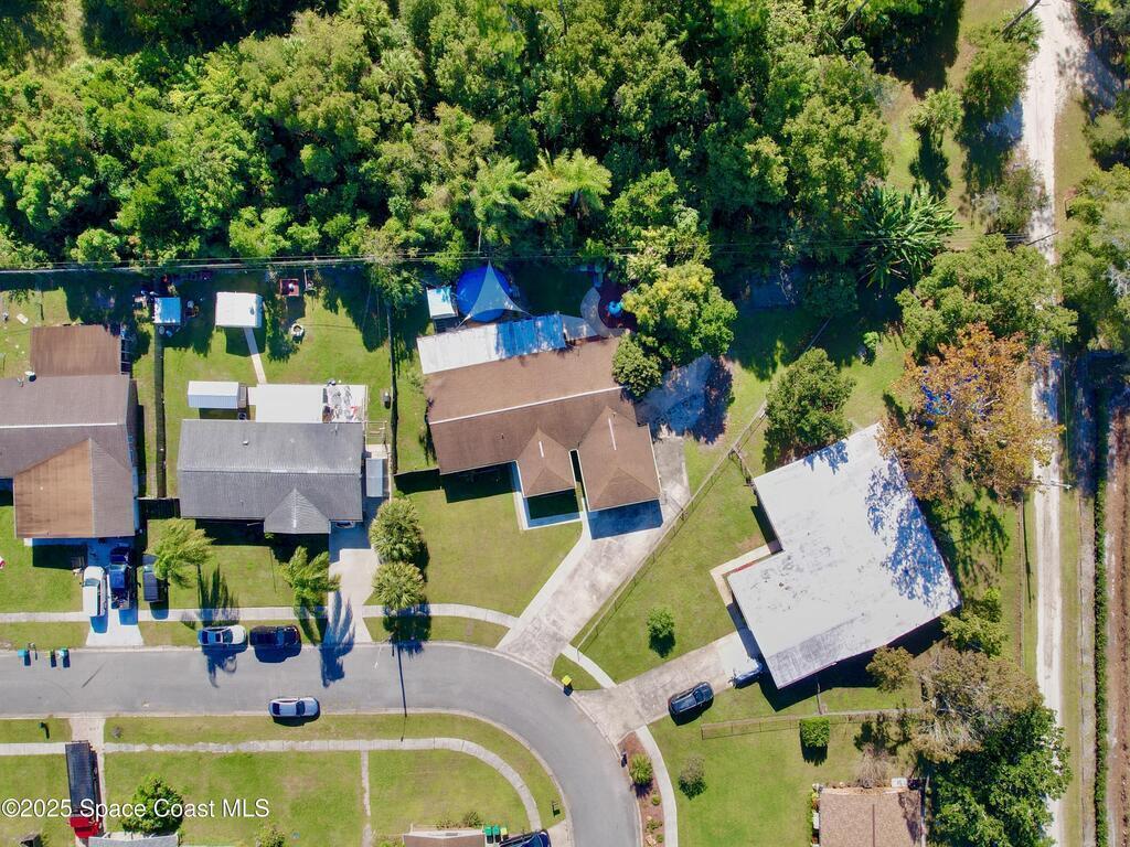 Welcome to this beautifully updated home in Mims, tucked away on a quiet dead-end street. NO HOA!!! With four bedrooms, two baths, a two-car garage, and an extra long and wide driveway, this open floor, split-plan design offers both space and comfort. Peace of mind comes with the many thoughtful upgrades: storm-rated windows and doors, plumbing, electrical panel, added insulation, a 2025 water heater, water treatment system with charcoal and carbon filters, and a newer septic system. The 3-year new kitchen boasts granite counter tops, thoughtfully designed cabinets with pull-out drawers, turntables, and soft-close features, a breakfast bar, and stainless-steel appliances. Beyond the kitchen, the home opens into formal dining and living areas, an indoor laundry room with plenty of cabinetry, a bonus enclosed room under air adds even more versatility, complete with its own refrigerator, ceiling fan, electric fireplace, and extra window unit AC. The rear porch offers a