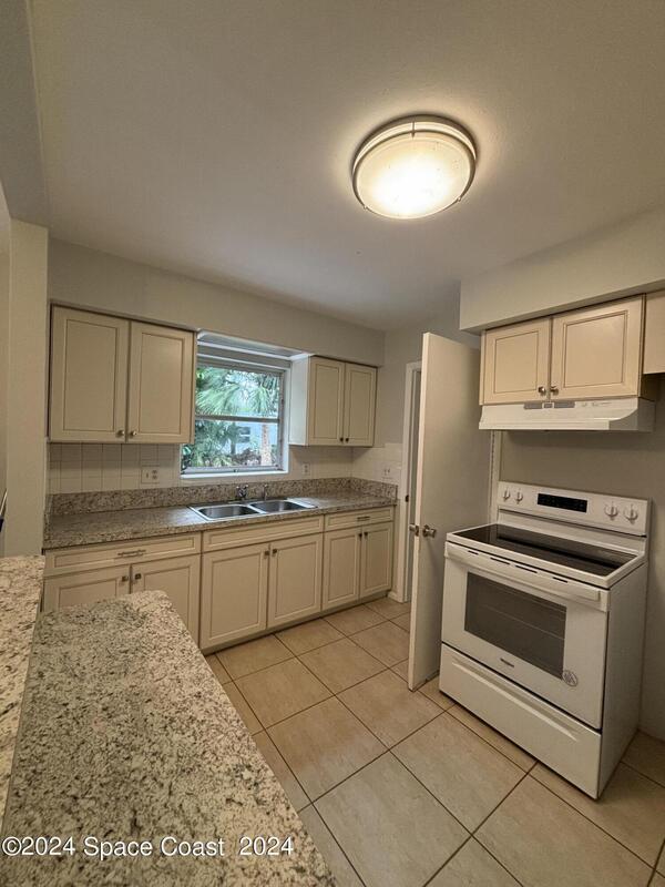 Freshly painted inside and out, even the garage September 2024. New Kitchen 2017, with brand new fanhood and stove replaced in 2024. Beautiful tile throughout, easy to keep clean, convenient indoor laundry room/mudroom right off the garage. The laundry room/mudroom could also double as a walk in pantry with this great layout. Brand new blinds in front windows facing the street, and spacious yard to view rocket launches from. Close to parks, the beach, and Eau Gallie Arts District. Indian River Coffee is within walking distance