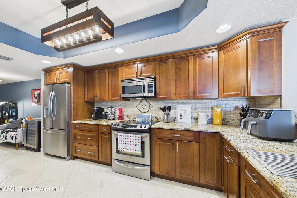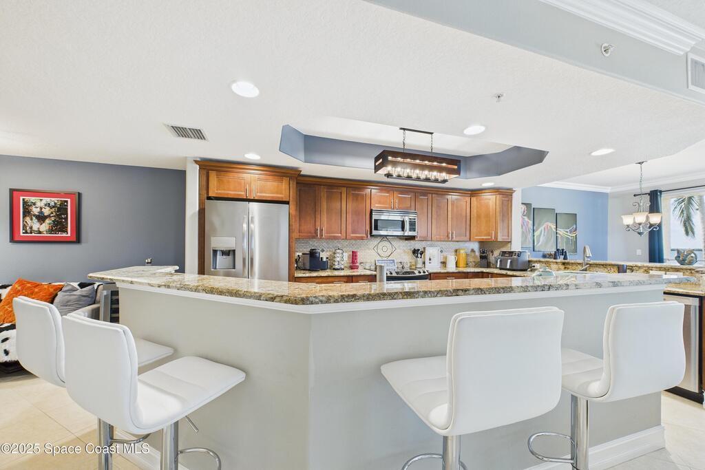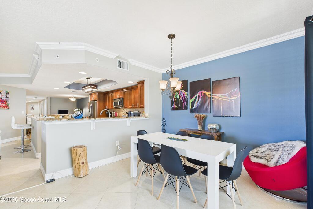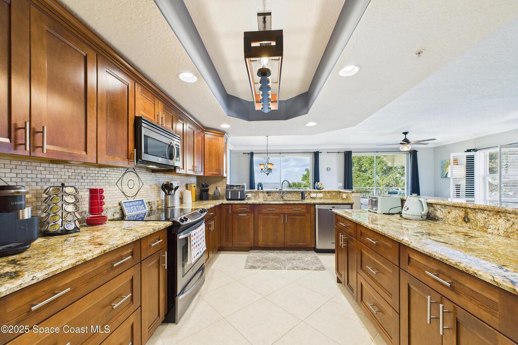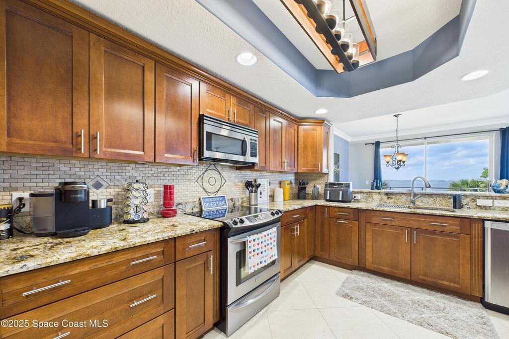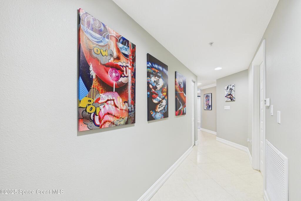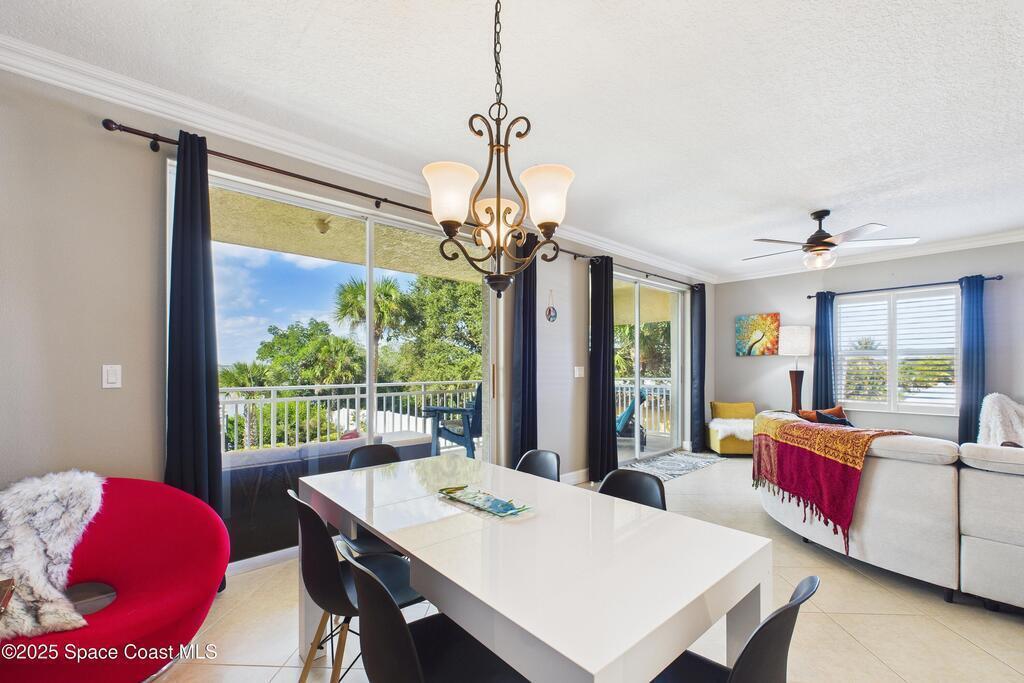 Spectacular DIRECT BANANA RIVERFRONT CORNER UNIT offering breathtaking views and a peaceful waterfront lifestyle in the boutique 11-unit community of Garden Bay. Rare opportunity to own an end unit in this highly desirable Cocoa Beach complex--just a short stroll to the ocean, restaurants, and shopping. Nearly 2,600 sq ft of luxury living with 4 bedrooms, 3.5 baths, and a private 2-car garage. High 8.5' ceilings, crown molding, travertine and wood flooring (no carpet), and impact windows with plantation shutters throughout. The gourmet kitchen boasts granite countertops, custom cabinetry, tile backsplash, and newer stainless appliances overlooking the water. Spacious owner's suite features double walk-in closets, private balcony, and spa-inspired bath with jetted tub and marble shower. Each guest bedroom has its own ensuite bath for privacy and comfort.
