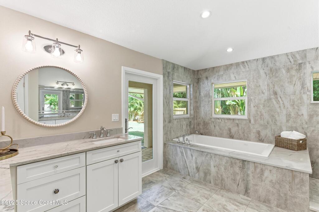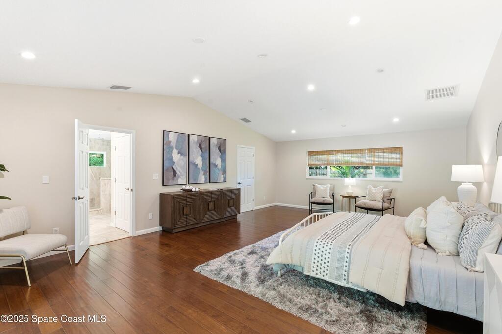 Spacious Concrete Block Indialantic custom pool home--crafted for entertaining and coastal living! Over 3500 sq ft, 5BR/4 baths - 2019 addition included Impact-rated windows, guest studio, electrical and plumbing updates, 2 HVAC units & newer roof! Main Living showcases a chef's kitchen that anchors three elegant adjoining living rooms--creating a stunning, seamless flow for gatherings. Massive primary suite is exceptionally appointed with a spa bath featuring gorgeous separate tub and shower, a personal showroom for your wardrobe & French doors that lead to pool. Two of the large secondary bedrooms have full ensuite baths, one is an attached guest quarter with separate private patio and entry. Your fully fenced yard is adorned with mature oaks and lush landscaping, creating a private oasis for outdoor living and entertaining. Your west-facing orientation provides breathtaking Indian River sunsets right from home. Enjoy a coastal lifestyle where you can bike to Brevard's premier beaches