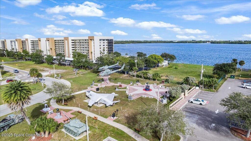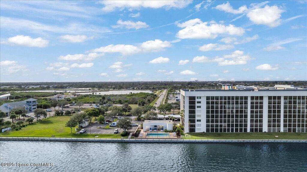 Looking for the perfect gift? FURNISHED SOUTH CORNER WITH WRAPAROUND GLASS ENCLOSED BALCONY! CLOSE BY END OF YEAR TO CLAIM HOMESTEAD EXEMPTION. Merritt Towers is a gated waterfront community centrally located on the Space Coast. The view never gets old. Wake to gorgeous sunrises, dolphins, manatees... and even a rocket launch! Spacious floor plan with plenty of natural light throughout. Well funded and managed association with full time maintenance staff, 2 elevators per building, 2 waterfront pools (north pool is heated year round) hot tub, sauna, tennis/pickleball, active social committee, with weekly events in clubhouse, dog park. Updated kitchen with granite countertops, motorized hurricane shutters. Within walking distance to Veterans Mem Park, walking trails, mall, bank, restaurants, drug store. Construction of the Health First Hospital across street. Just minutes to Beaches, Port/Cruise Ships, Cocoa Village. EZ commute to SpaceX, Blue Origin, NASA/KSC, Space Force Station