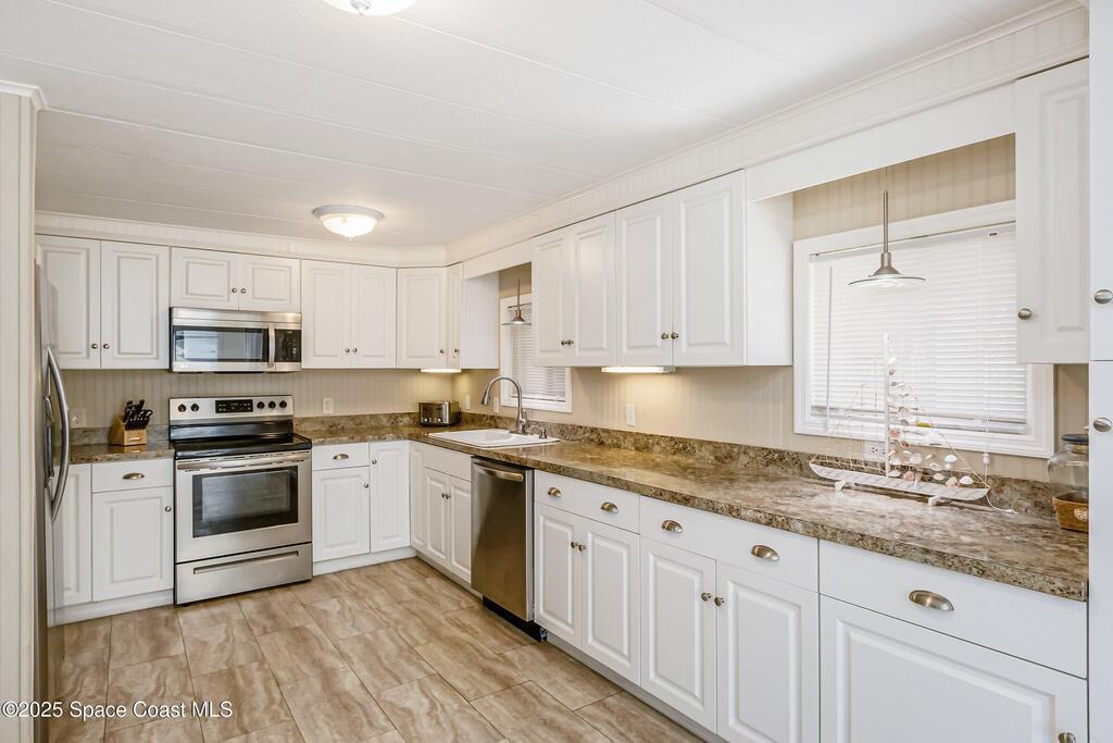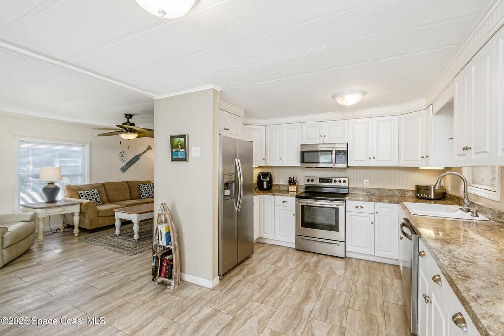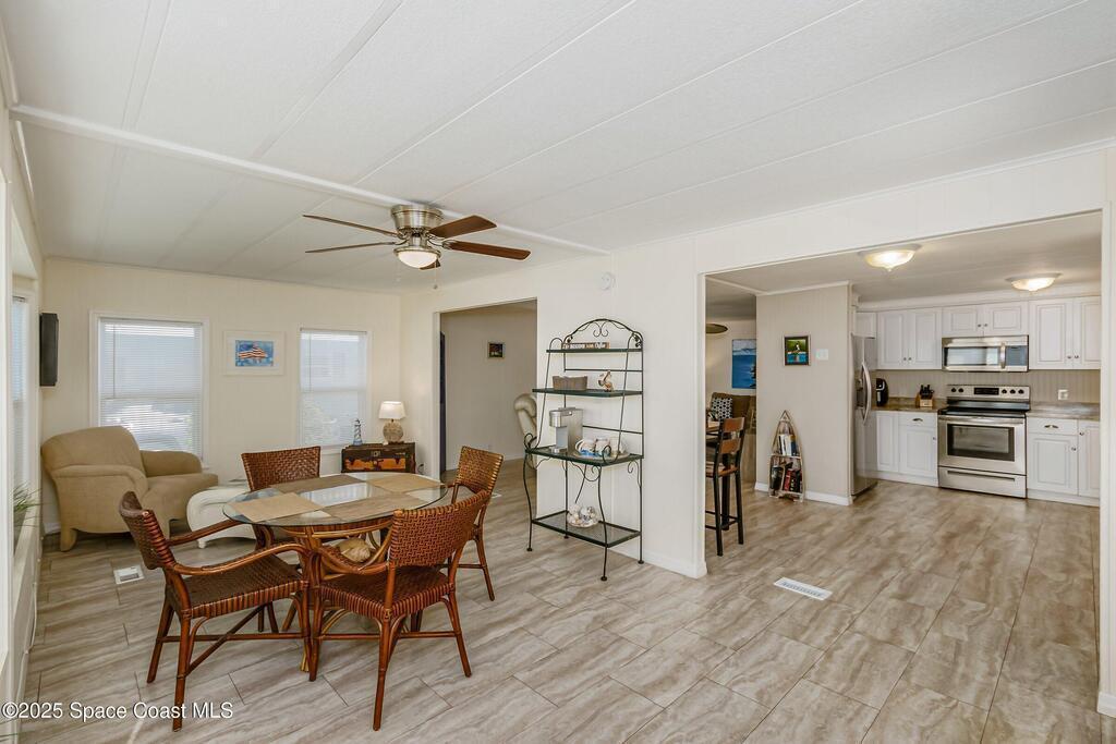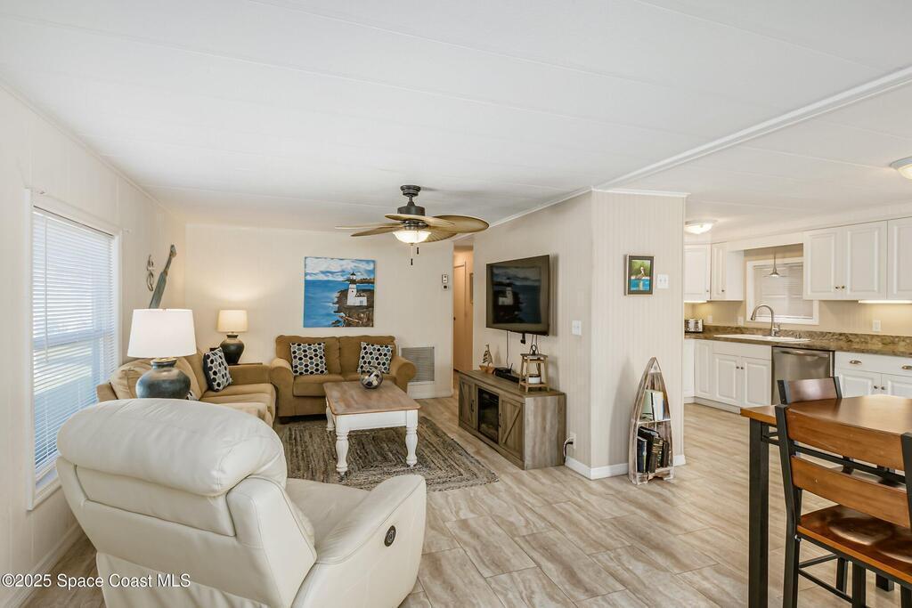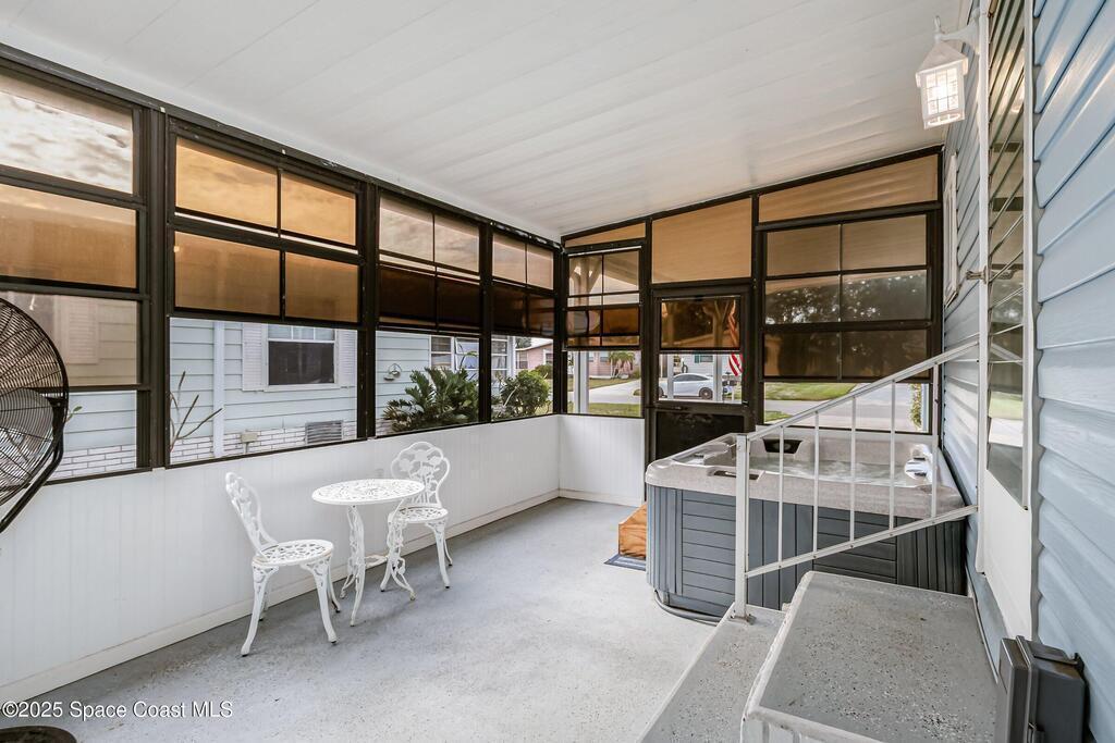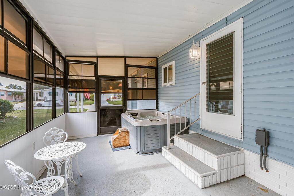 Assumable 3.1% interest loan, VA to VA only! This updated and furnished 2-bedroom, 2-bathroom home features an inviting open floor plan and a spacious kitchen with stainless steel appliances. Renovated in 2017 with all new windows, roof, and A/C, the home offers peace of mind and modern comfort. Large closets and an in-unit washer and dryer add everyday convenience.Step outside to your private screened-in patio complete with a relaxing jacuzzi tub -- perfect for unwinding. The property also includes a large storage area that can double as a workshop, plus a peaceful paved patio area at the backyard with room for a dog to run.Move-in ready and thoughtfully upgraded, this home blends comfort, functionality, and exceptional value.