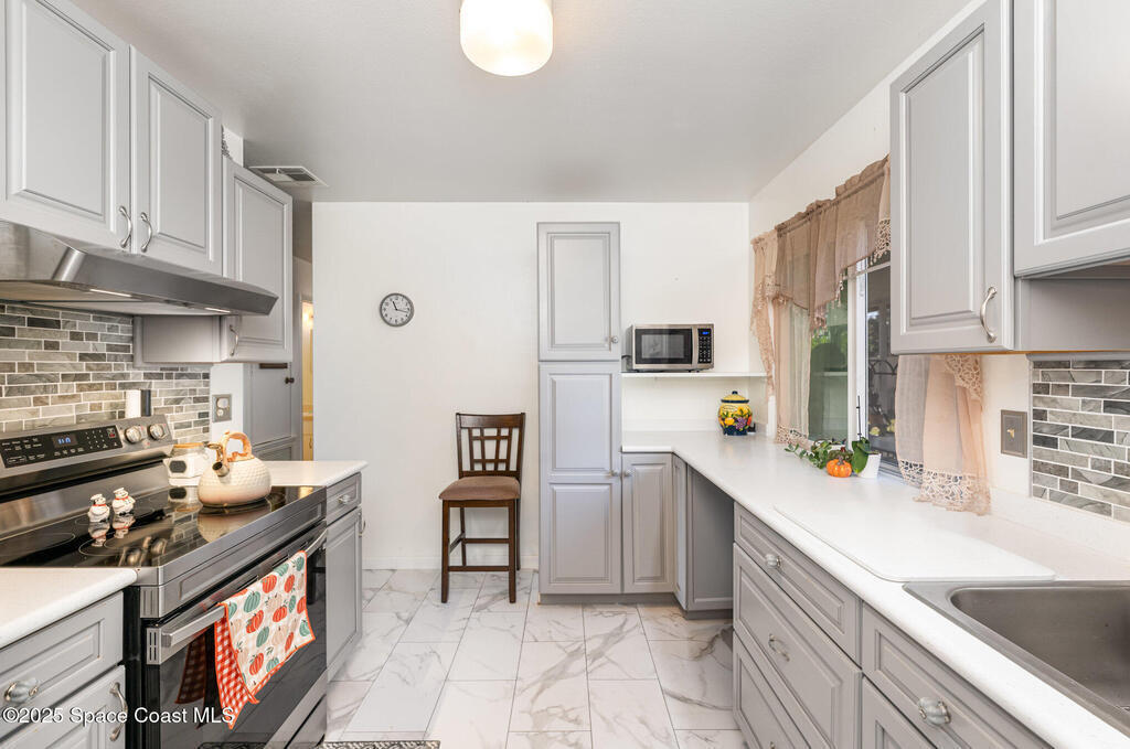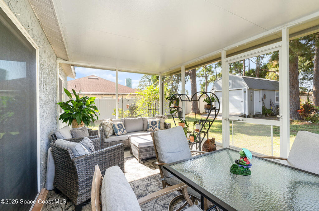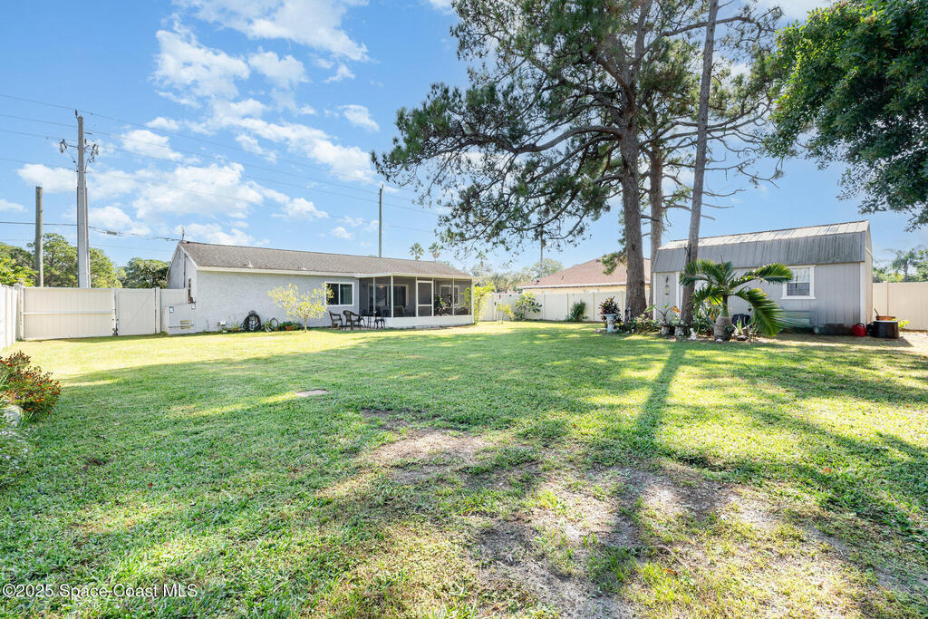 Charming 2-bedroom, 1.5-bath home featuring a beautifully remodeled kitchen with stainless steel appliances and a stylish tiled backsplash. Updated laminate and tile flooring run throughout, complemented by impact-resistant windows & doors. Enjoy the newly added screened patio overlooking the yard, plus an oversized shed--perfect for storage & hobbies. Full vinyl privacy fence with a drive-thru side entry gate offers ample space to park your boat, RV, or other toys. Contracted to upgrade septic system to city sewer. Move-in ready with thoughtful upgrades throughout! Make your appointment to see this gem today!!