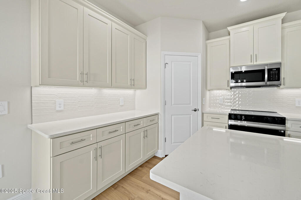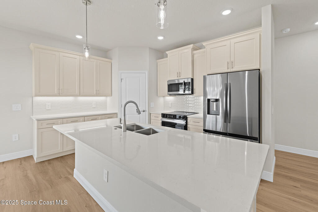 Ask us about our incentives, builder paid closing costs, & no down payment options when financing through the builder's preferred lender. This stunning new construction home exemplifies exceptional craftsmanship with soaring ceilings, a spacious open-concept great room, and a chef-inspired kitchen featuring all-wood shaker cabinets with crown molding, dovetail soft-close drawers and doors, quartz countertops, and a premium Samsung stainless-steel appliance package. Natural light fills the home through large windows and sliders leading to the covered lanai, complemented by luxury vinyl flooring throughout, tile in wet areas (no carpet!), and bathrooms with quartz-top vanities and fully tiled showers--no inserts. If you're searching for superior quality, thoughtful design, and unbeatable value, this is the home for you!