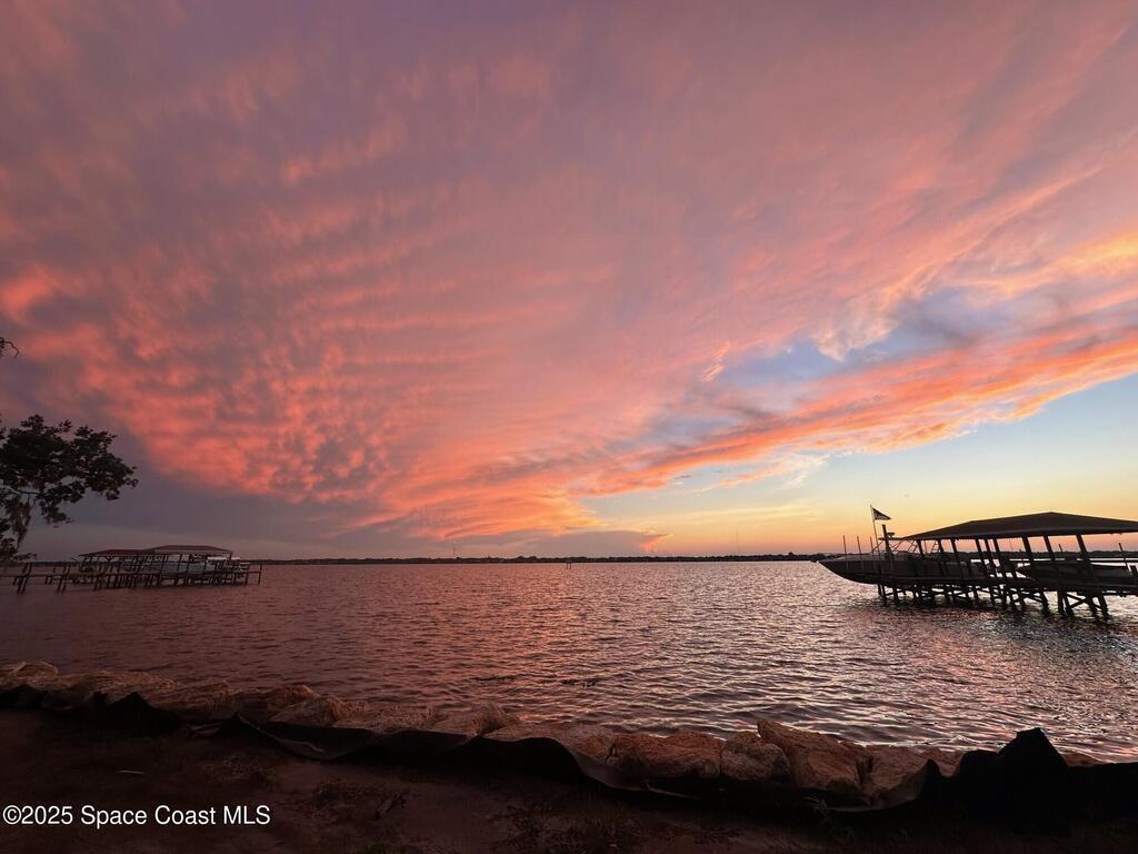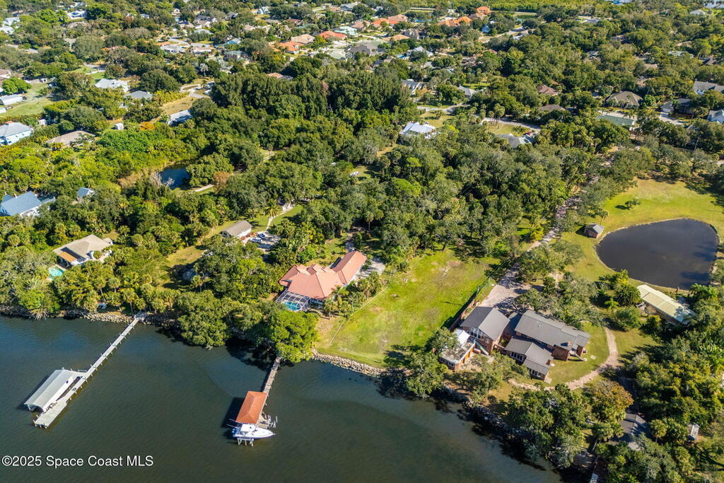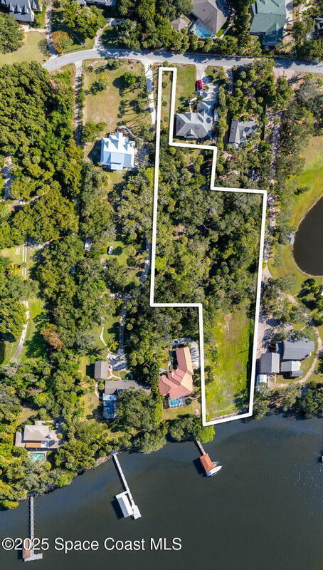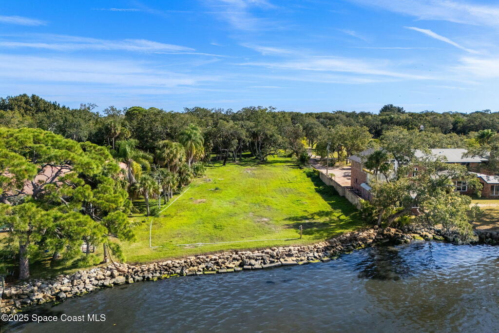 Amazing, Riverfront estate property in highly desirable, quiet Merritt Island neighborhood. Wind your way through beautiful Live Oaks to the already cleared area ready for your brand new custom home! No mangroves to obstruct your view, just open water, nature and dramatic sky shows daily. Permit already approved for a private boat dock and plans available for a magnificent 6,500 sq ft home. A new coquina seawall from 2024 and power run to the rear of the property have you two steps closer to being ready to enjoy this very special Riverfront estate property.