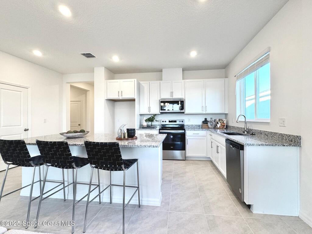 Come see this brand new construction never lived in 4-bedroom 2 bath home with lake views! Open floor plan with tile flooring and a spacious great room. Kitchen is equipped with an island, granite countertops, stainless steel appliances and 42-in. upper cabinets with satin nickel hardware. The covered back patio provides the ideal setting for outdoor entertaining and enjoying the lake view! Make your appointment today! Washer and dryer included, not warrantied.